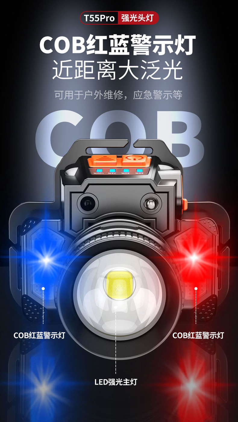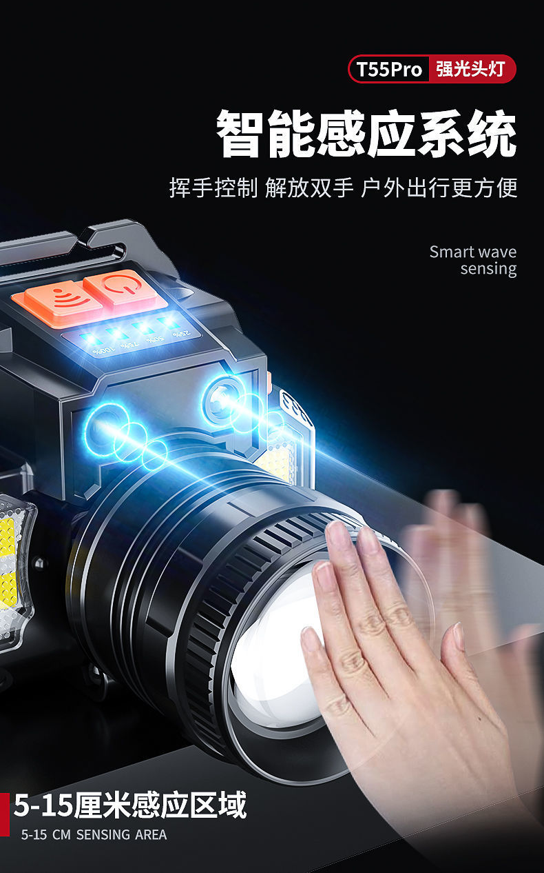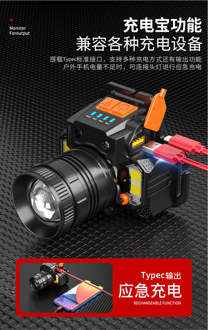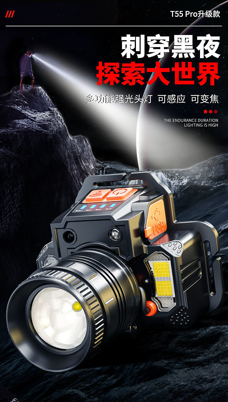 Длинный срок службы фары сильный свет литиевая электрическая зарядная индукционная шахтная лампа наружный сильный свет светодиодные фары оптовая продажа