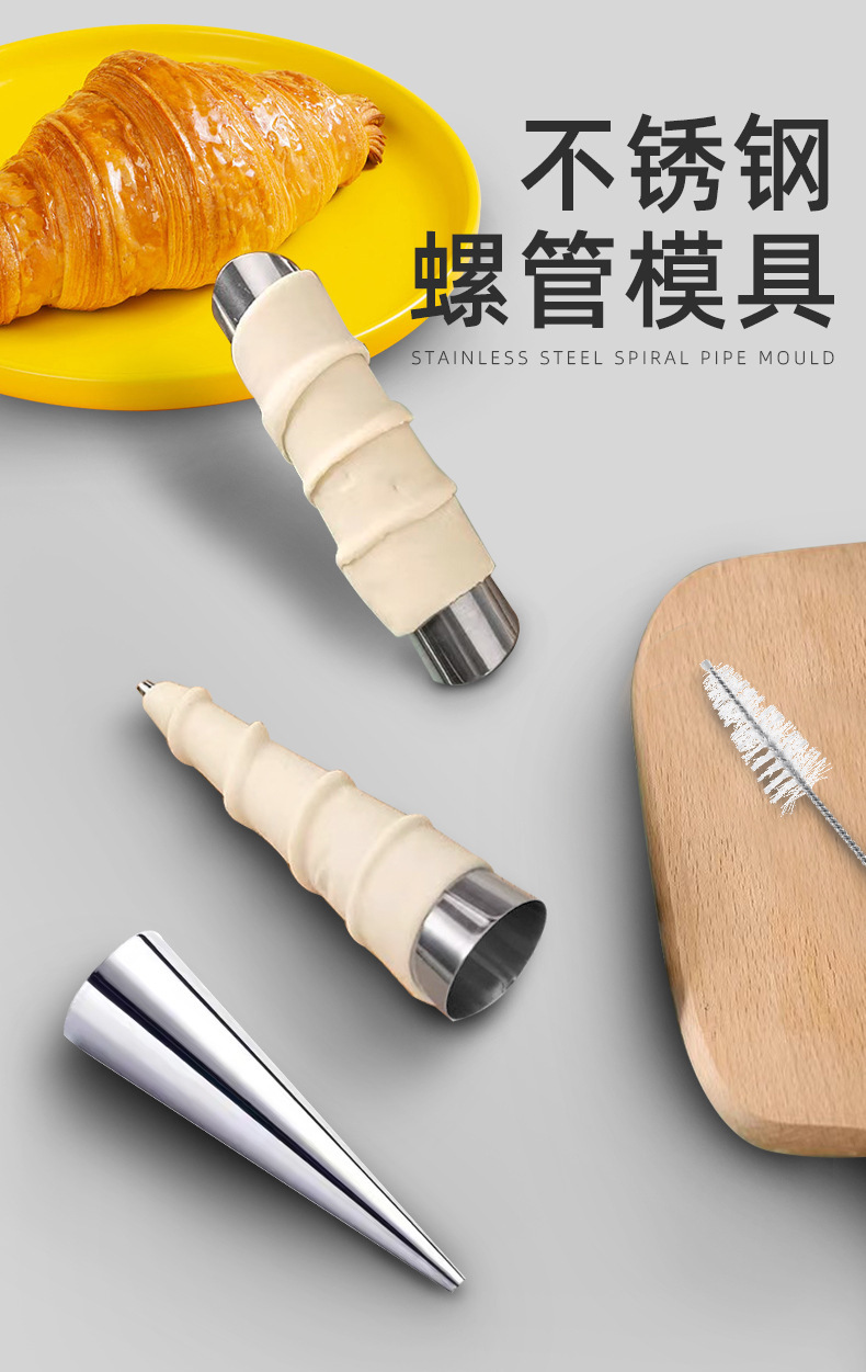 Серебряный датский конус трубки выпечки виджет из нержавеющей стали полые рога плесень круассан хрустящий датский хрустящий бог