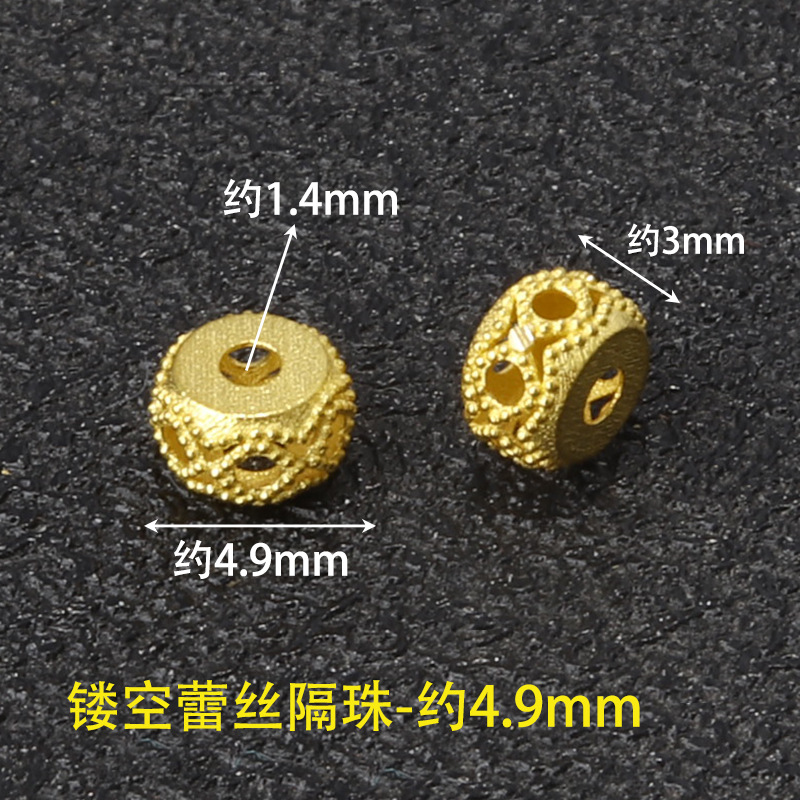 Маленькие полые бусины-разделители в виде цветочного барабана - около 2,4 мм, одна; Маленькие полые бусины-разделители в виде цветочного барабана - около 3,0 мм, одна; Маленькие полые бусины-разделители в виде цветочного барабана - около 4,4 мм, одна; Маленькие полые бусины-разделители в виде цветочного барабана - около 4,85 мм, одна; Полые кружевные бусины-проставки - около 4,3 мм, одна; Полые кружевные бусины-проставки - около 4,9 мм, одна; Полые кружевные бусины-проставки - около 5,1 мм, одна