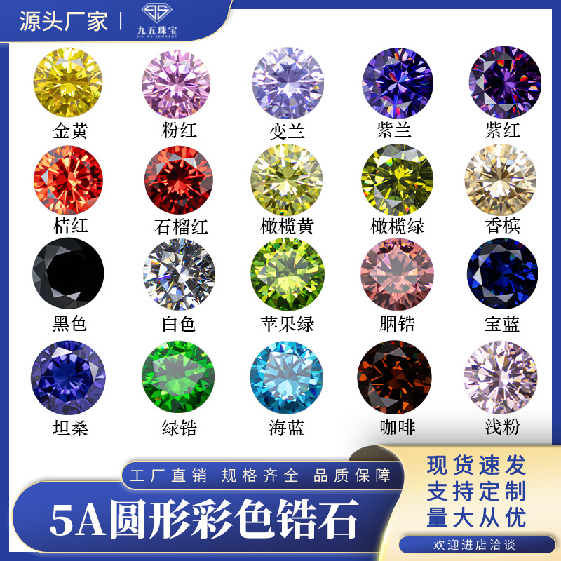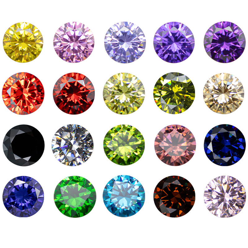 Оптовая продажа искусственного циркония Wuzhou 3A белого/цветного круглого циркония 0,8 мм~15 мм с заостренным дном, камни CZ, основной камень