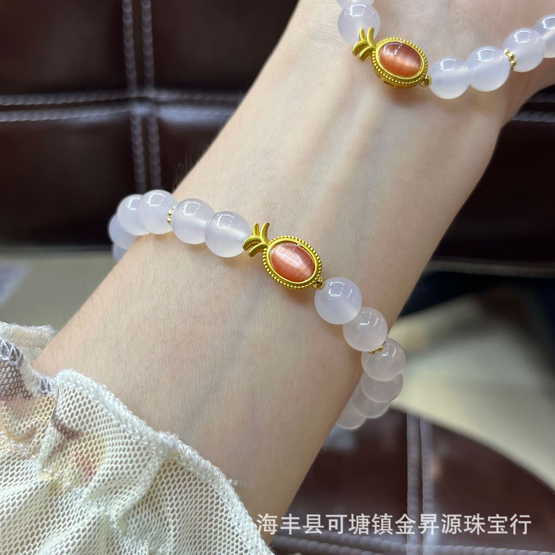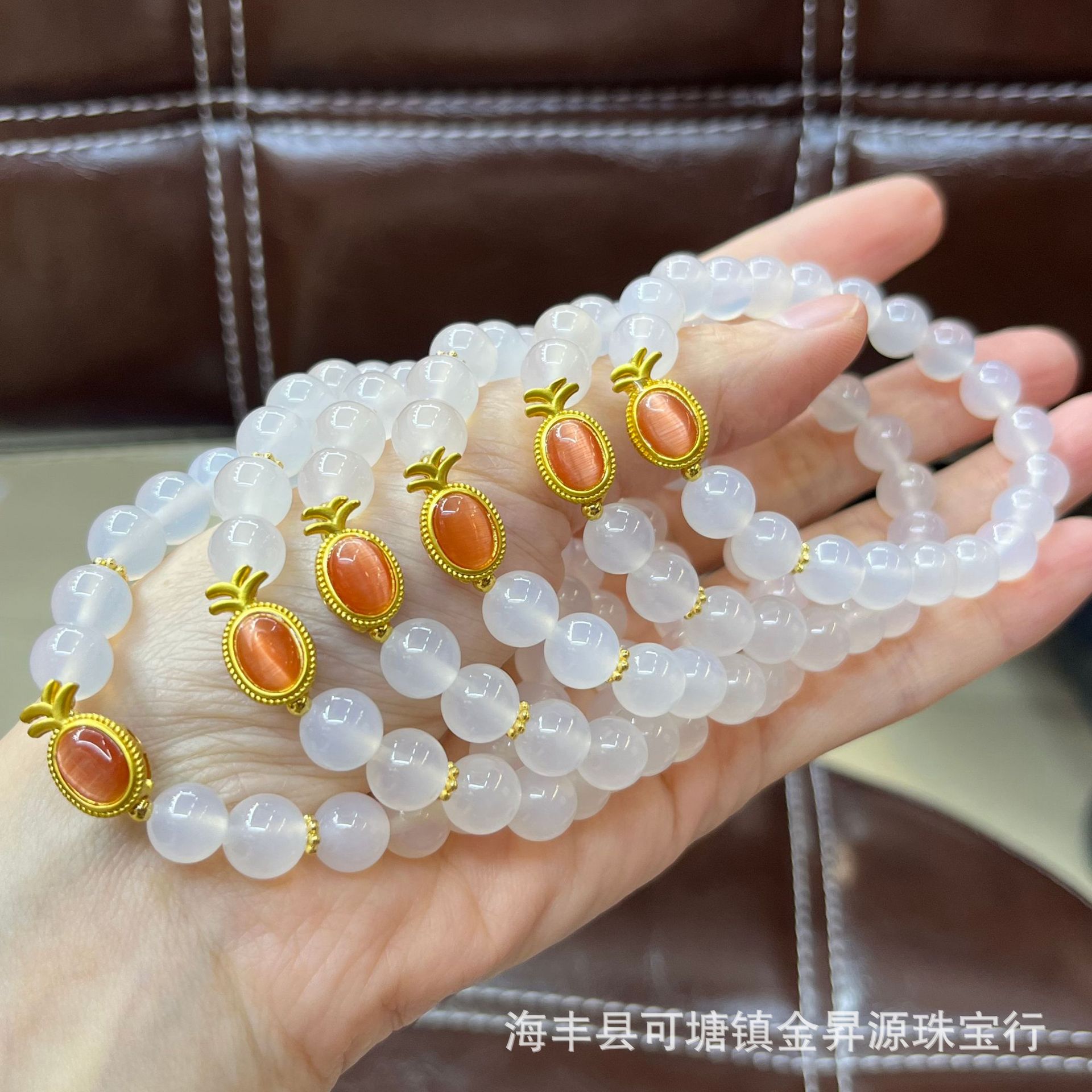 天然荔枝冻白色玛瑙手链女搭配古法金夏天简约原创设计手串直播款 批发量越大价格越低,可供直播间长期合作,欢迎来电私聊