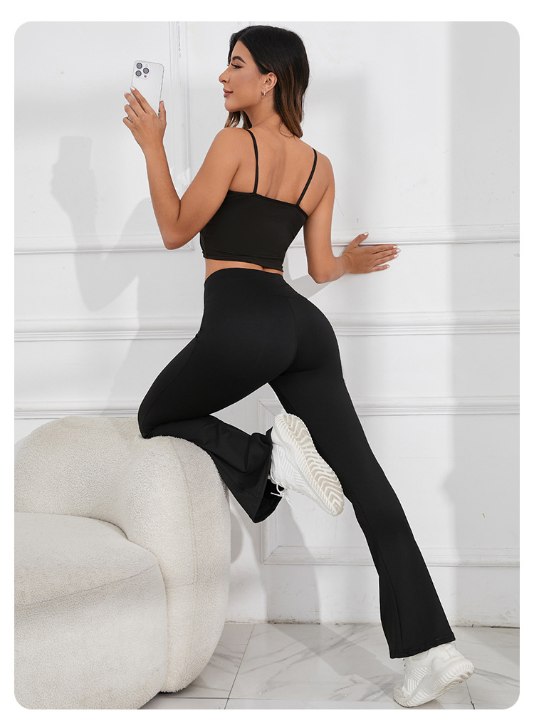 Европейская и американская обнаженная йога расклешенные брюки с высокой талией и бедрами колготки женские спортивные штаны для фитнеса персик бедра широкие брюки
