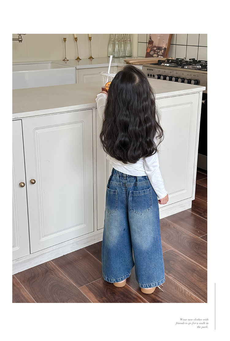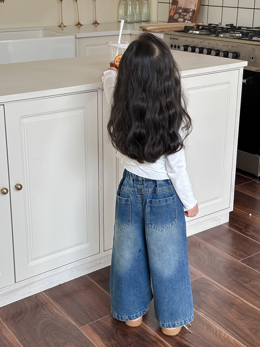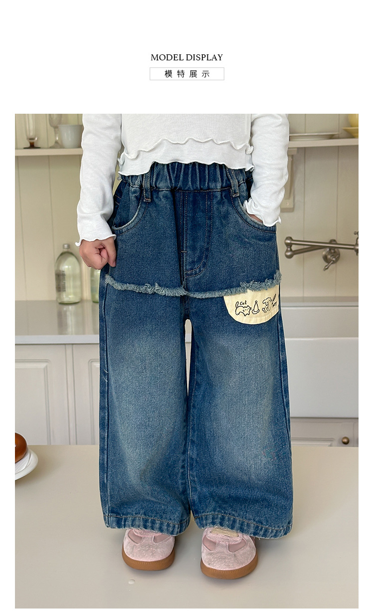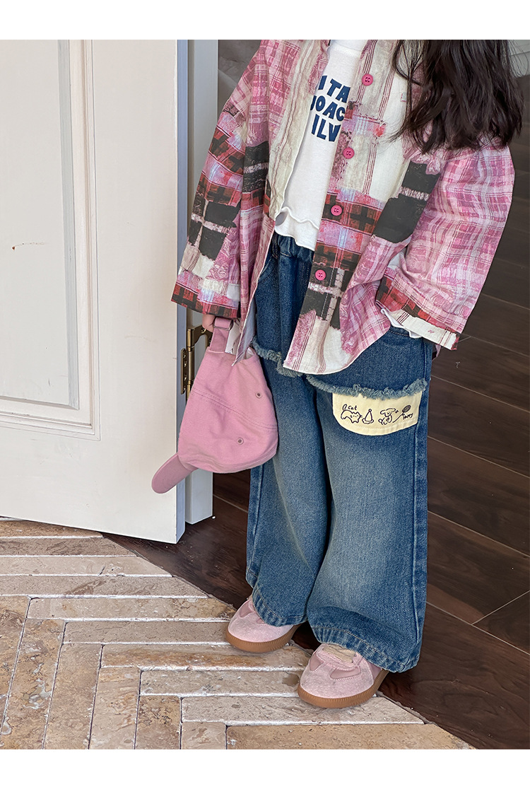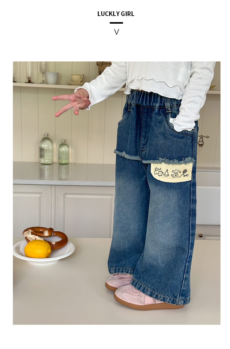 Оранжевые весенне-осенние детские штаны для девочек, свободные джинсы в корейском стиле, детские повседневные длинные штаны с героями мультфильмов, широкие брюки