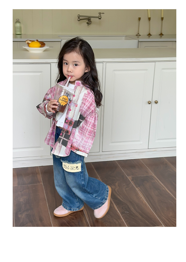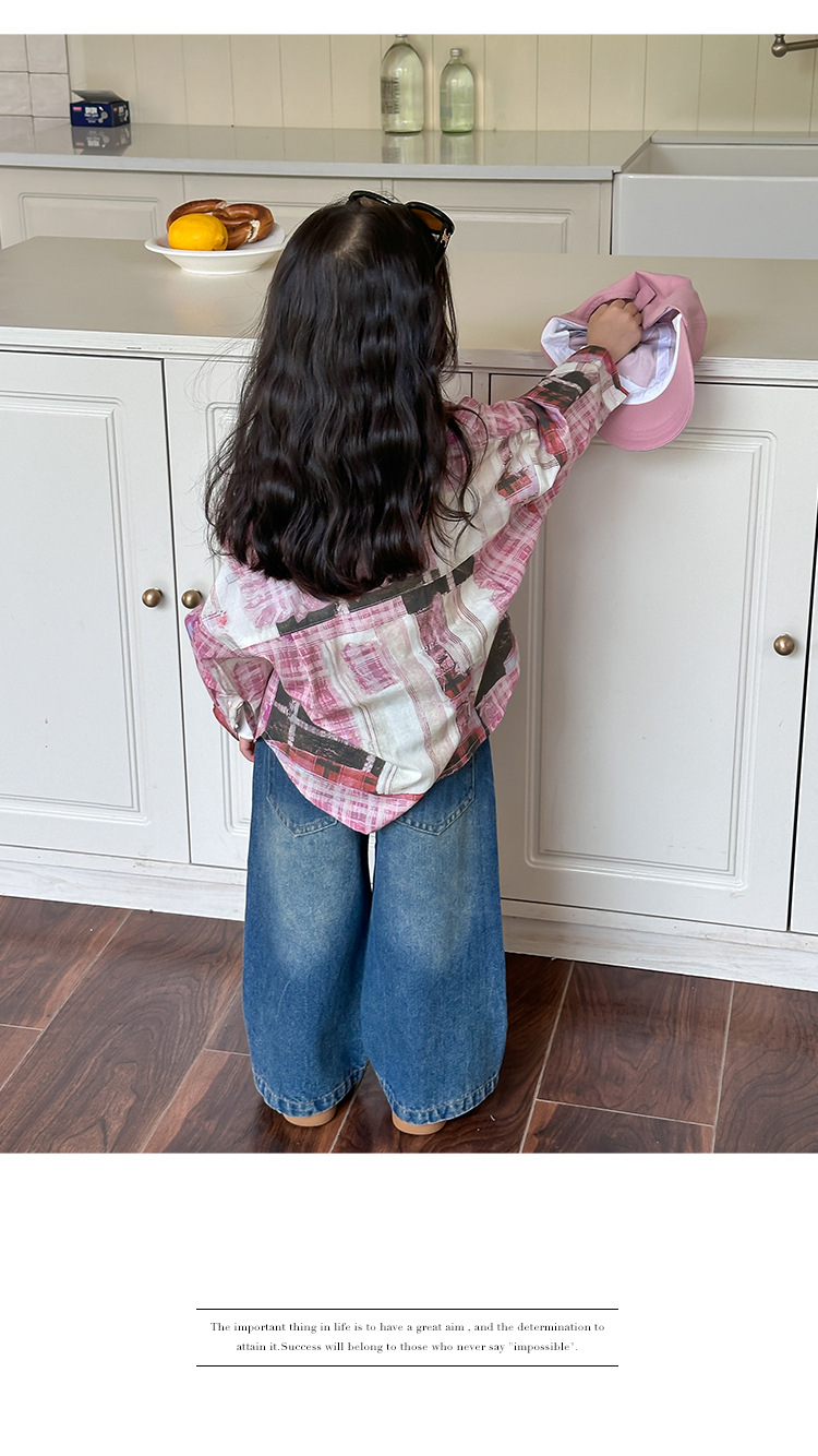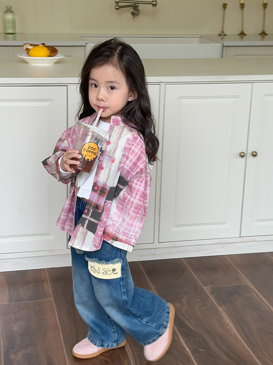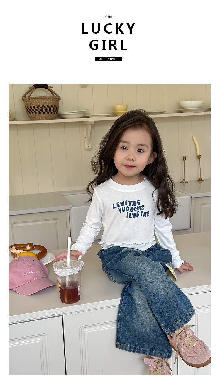 Оранжевые весенне-осенние детские штаны для девочек, свободные джинсы в корейском стиле, детские повседневные длинные штаны с героями мультфильмов, широкие брюки