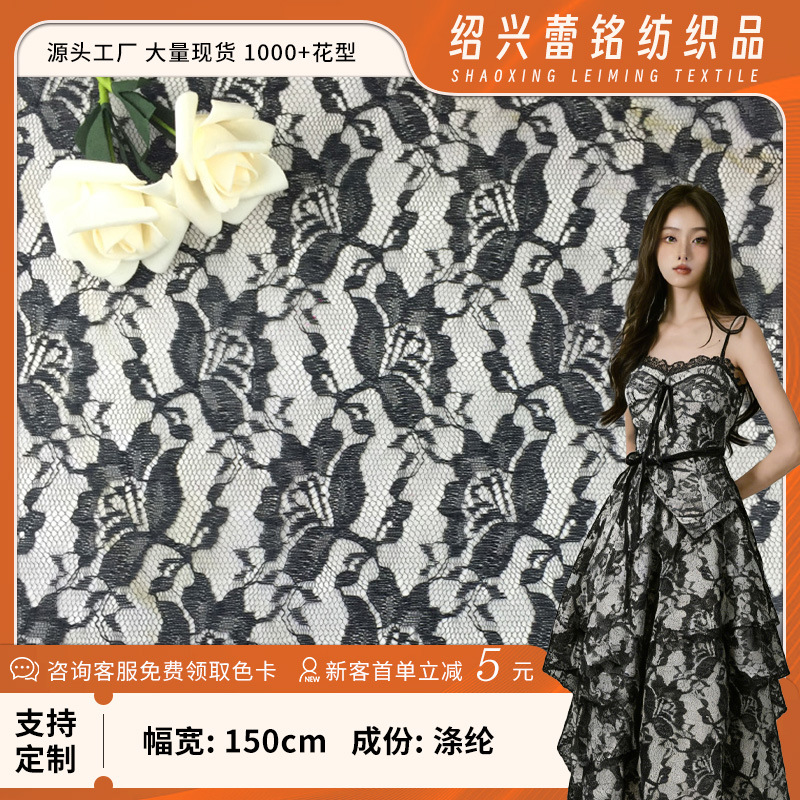 Популярная трансграничная ткань из полиэстера с кружевом «лотос» на сетчатой основе для женской одежды, детской одежды, аксессуаров для нижнего белья и свадебных платьев.