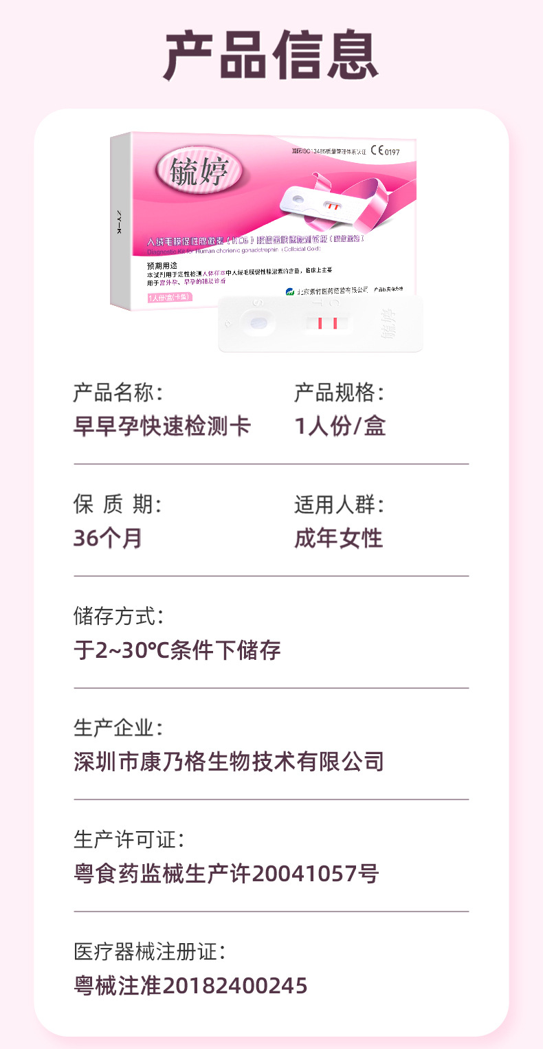 早孕医疗器械注册证号:粤械注准20182400245