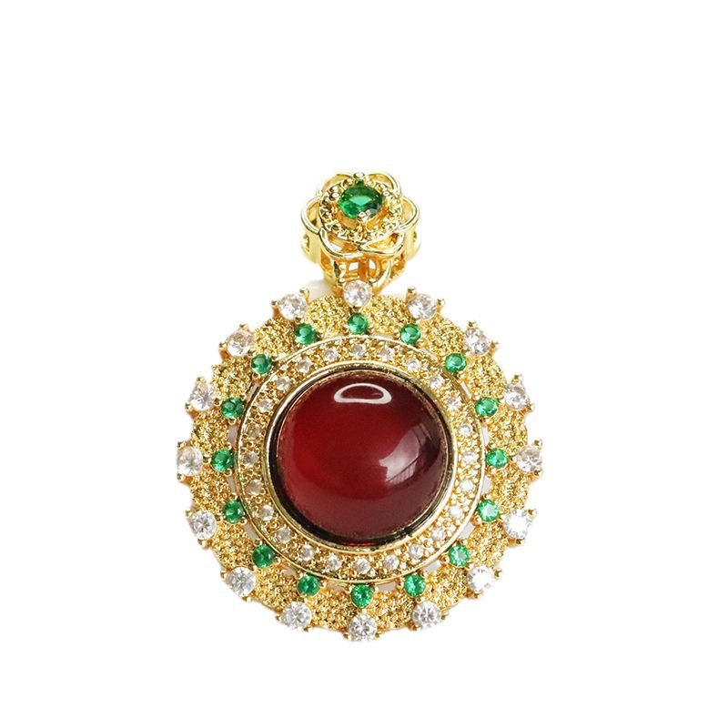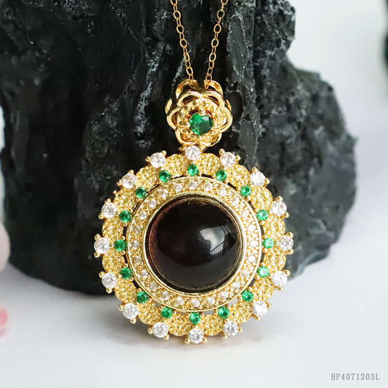Подвеска-подсолнух с бриллиантами из кровавого янтаря