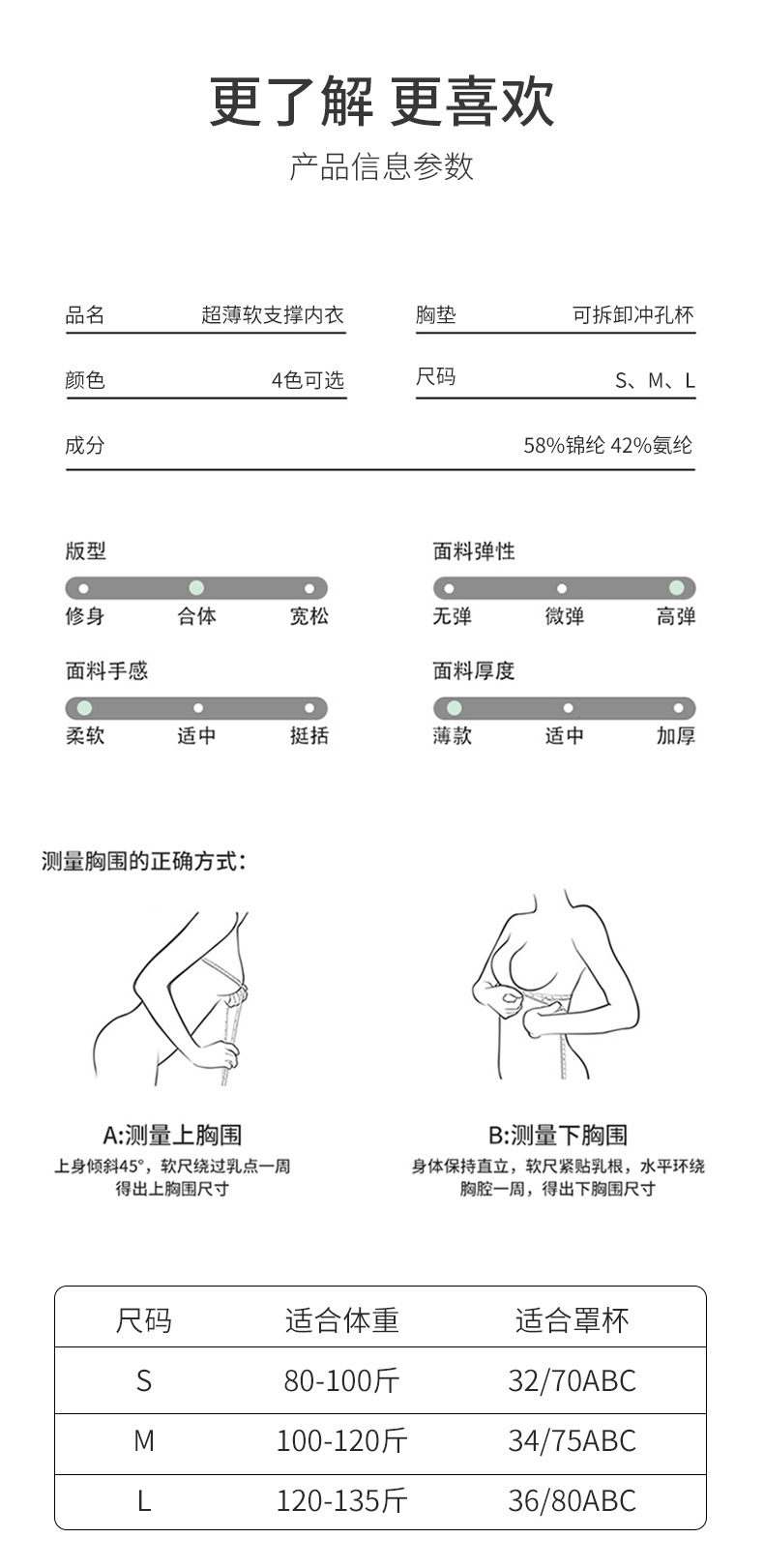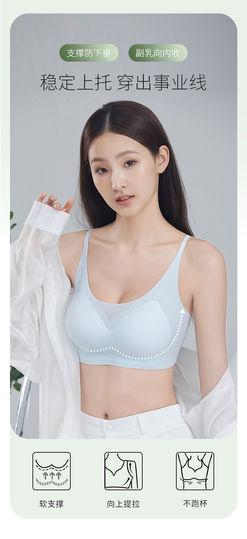 Собрать вместе; Без следов; Дышащий; Подвеска; Красивая спина; Защита от света; Тип регулировки; Комфорт; Боковая уборка; Съемочное молоко; Большая грудь маленькая