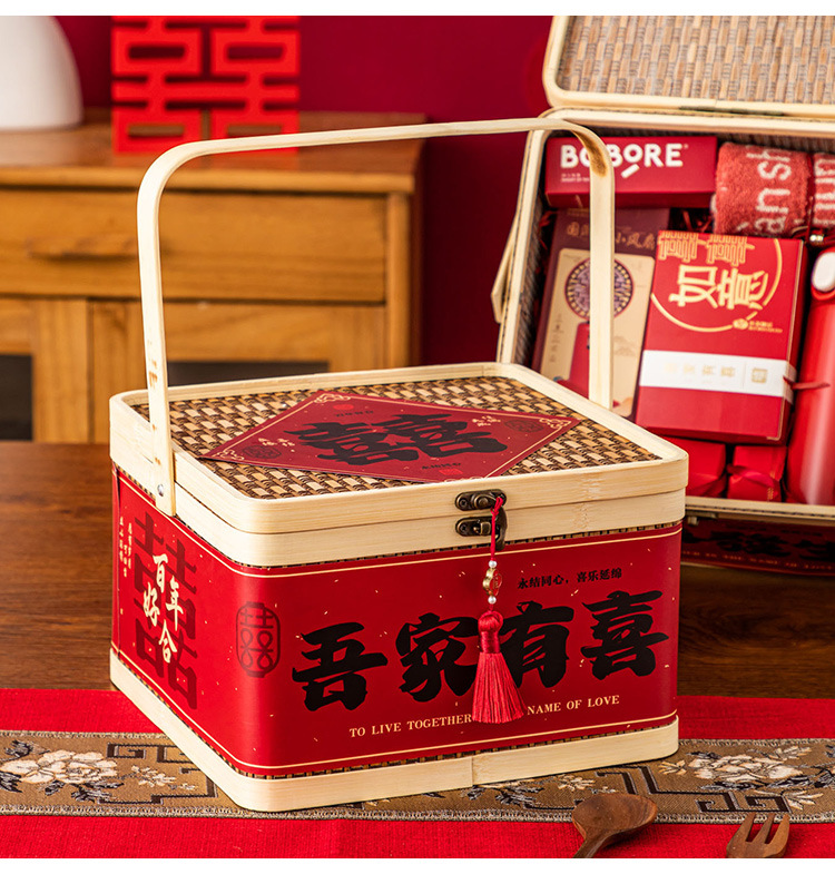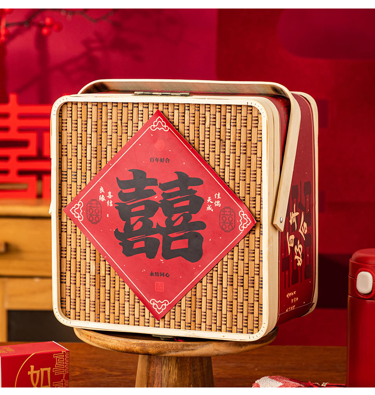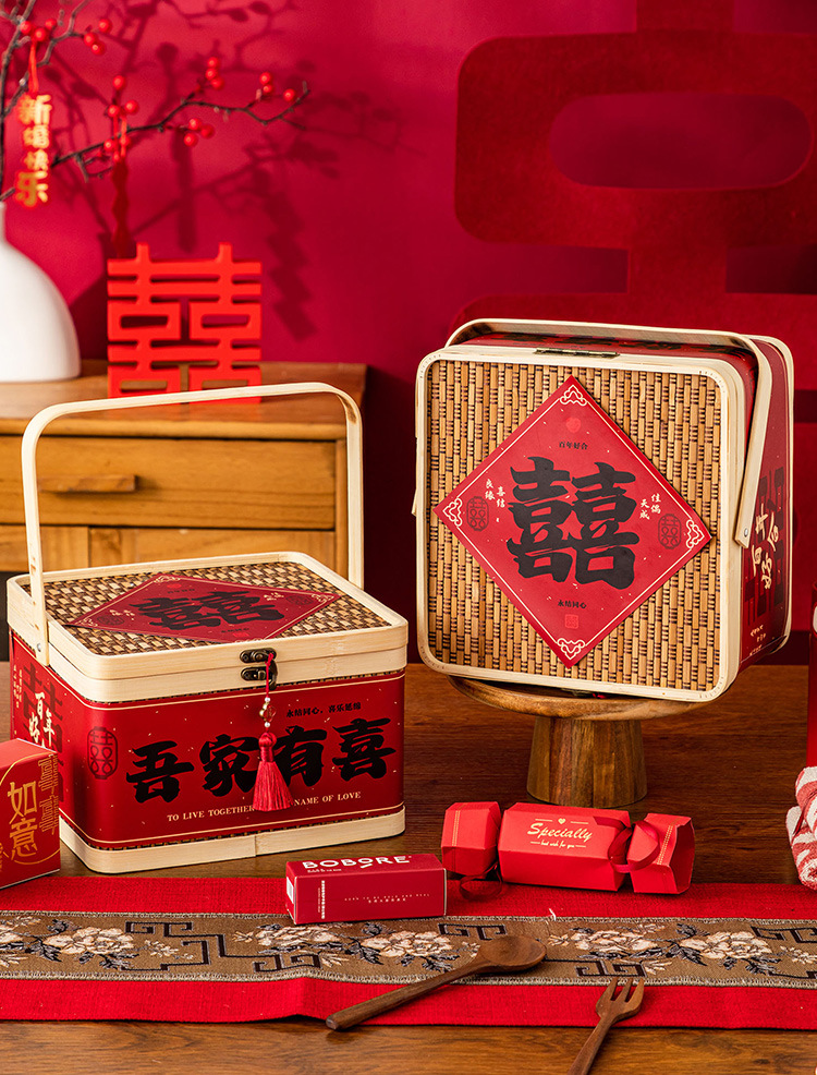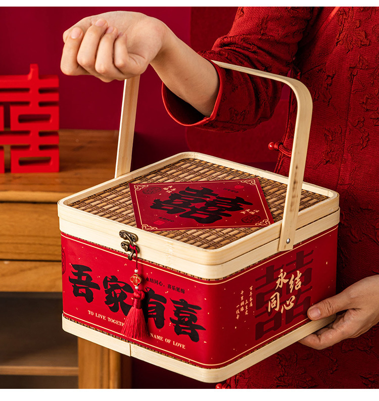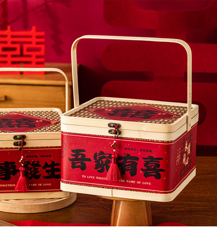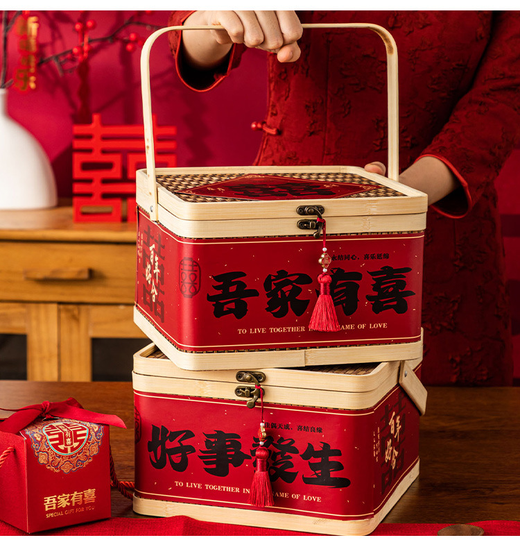 Свадебная коробка для конфет с эффектом премиум-класса, пустая коробка, в китайском стиле, винтажная деревянная, ручной работы из бамбука, подарочная коробка для конфет на свадьбу.