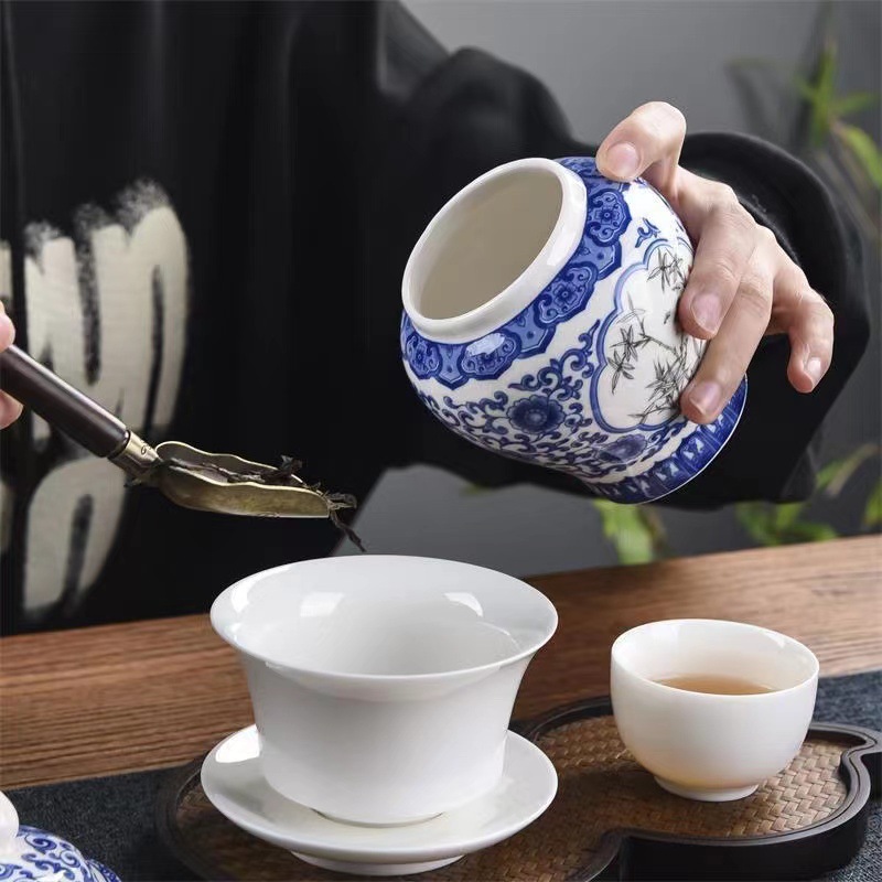 Синие и белые фарфоровые чайные банки Винтажные керамические чайные церемонии Аксессуары для чайных банок