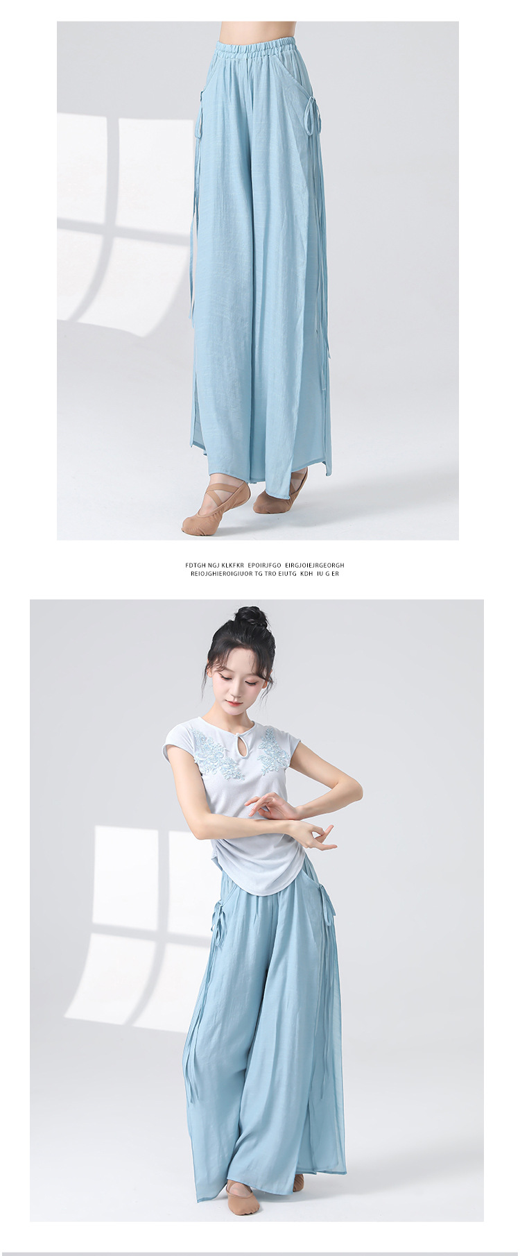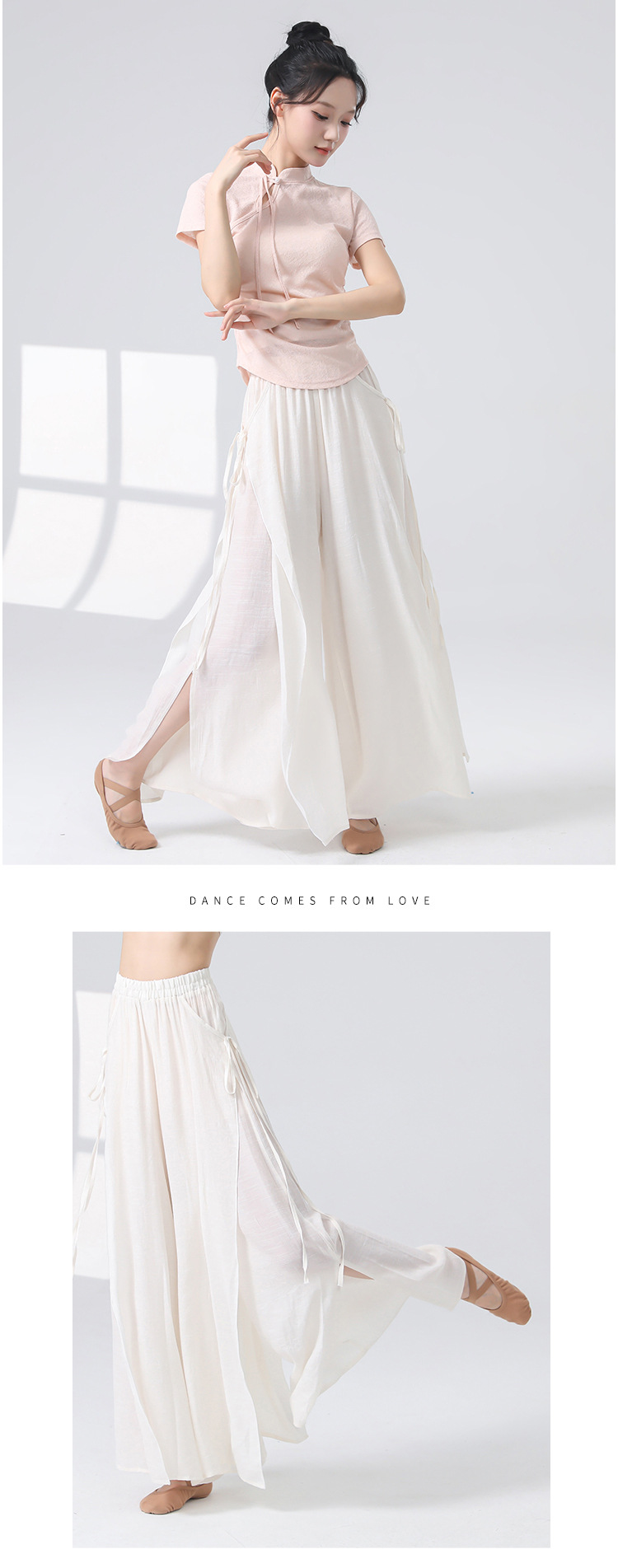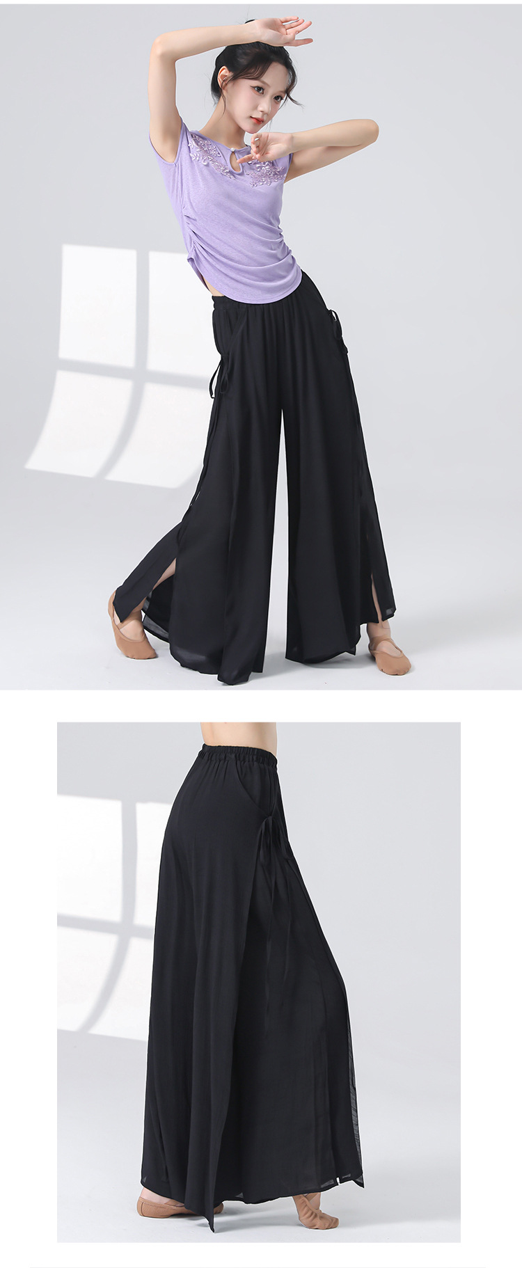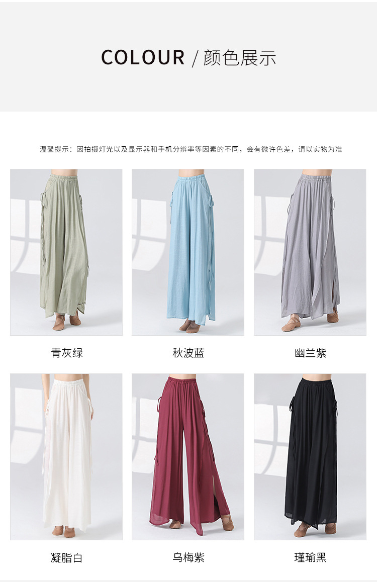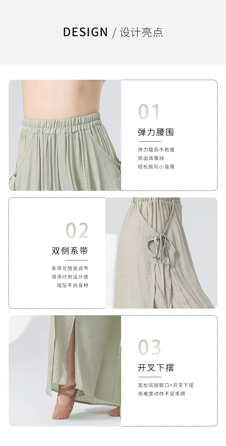 Женские универсальные брюки для занятий классическим танцем с высокой талией, свободного кроя, с разрезами и лентами, художественные широкие брюки в китайском стиле из хлопка и льна.