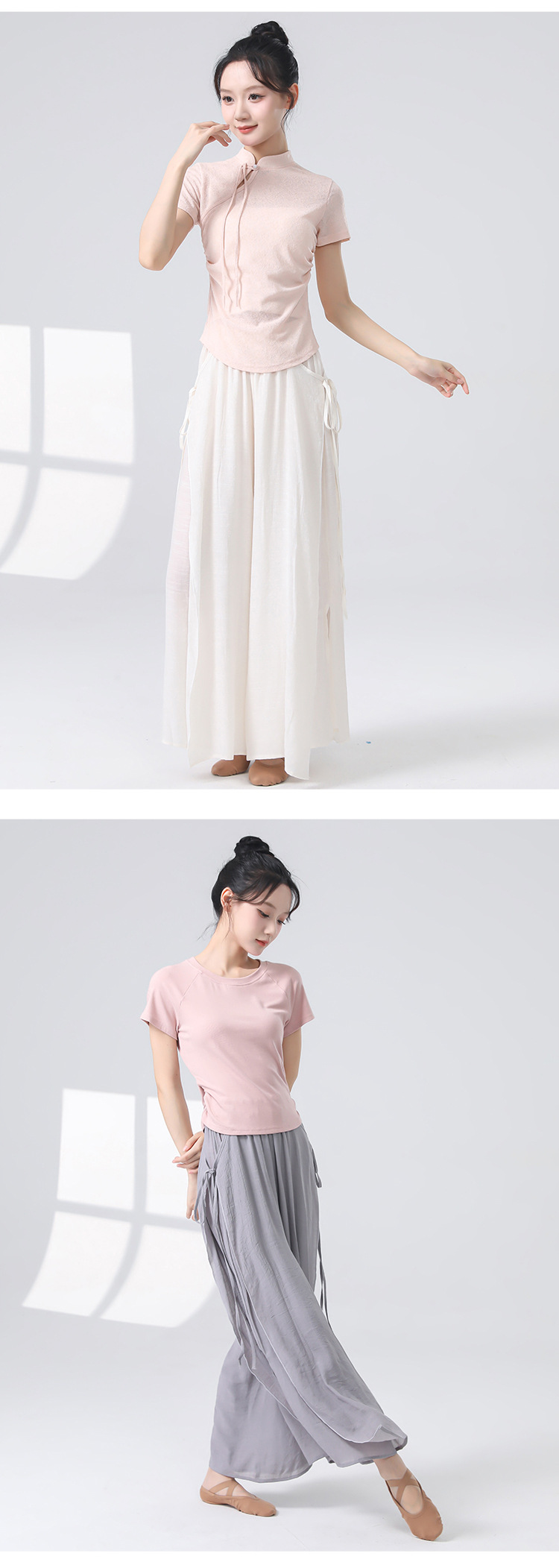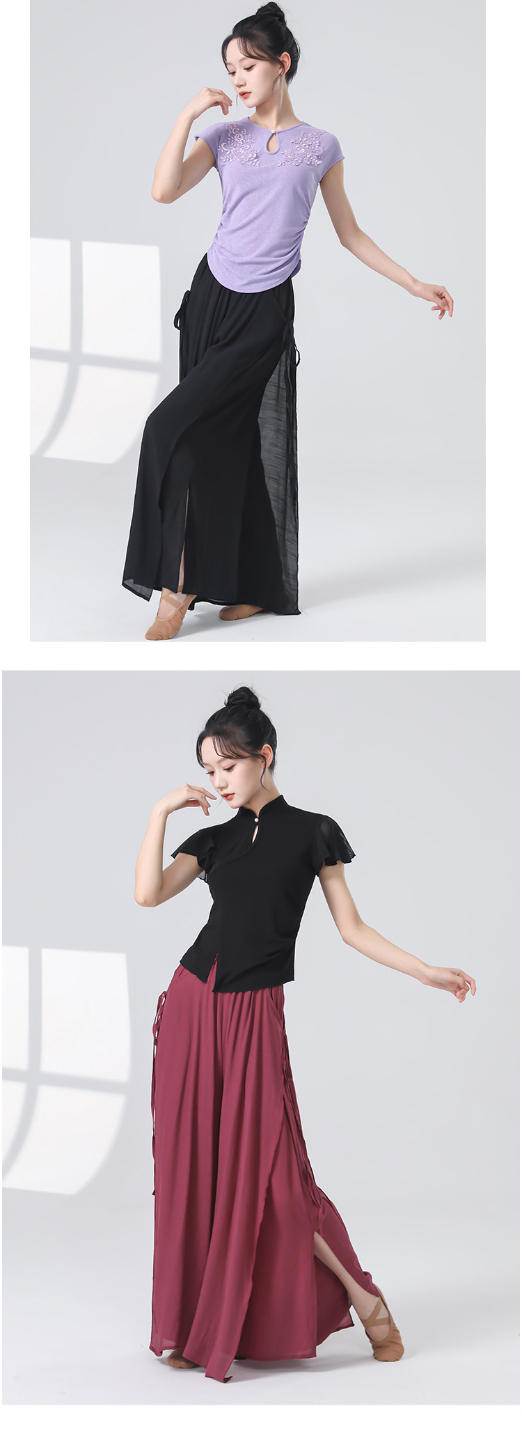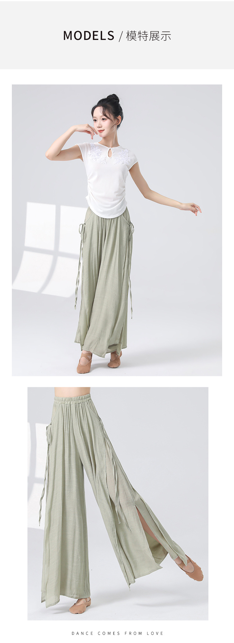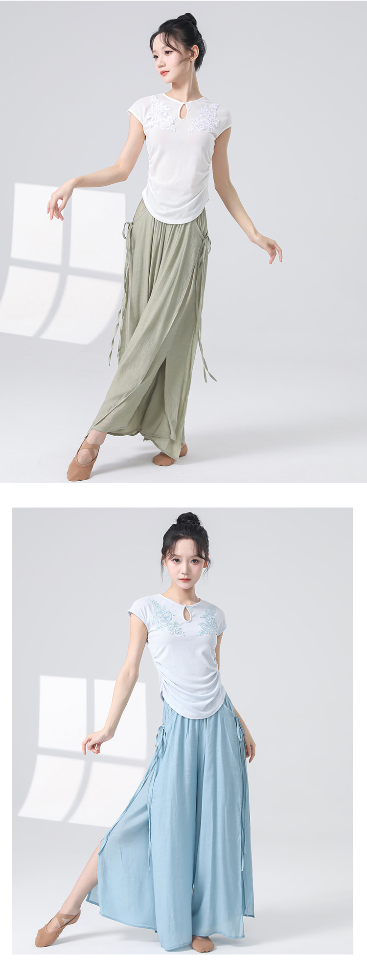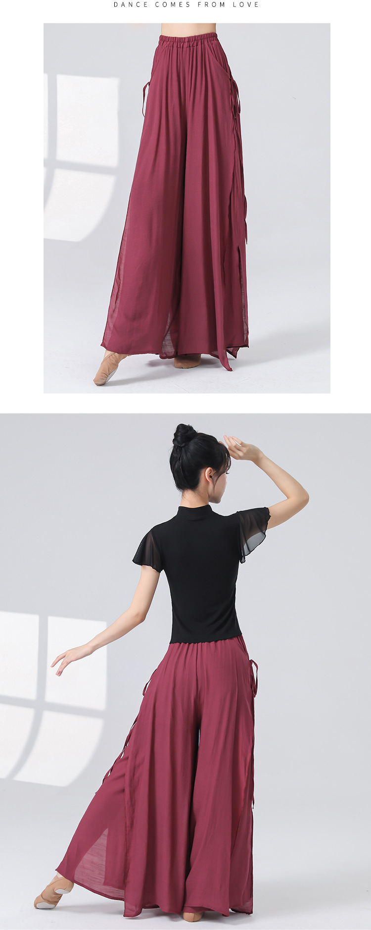 Женские универсальные брюки для занятий классическим танцем с высокой талией, свободного кроя, с разрезами и лентами, художественные широкие брюки в китайском стиле из хлопка и льна.
