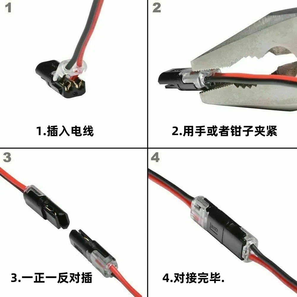 Быстроразъемный соединитель D2 без снятия изоляции, двухпроводной, с блокировкой, для шнура питания светодиодной ленты, комплект клемм D2 в упаковке.
