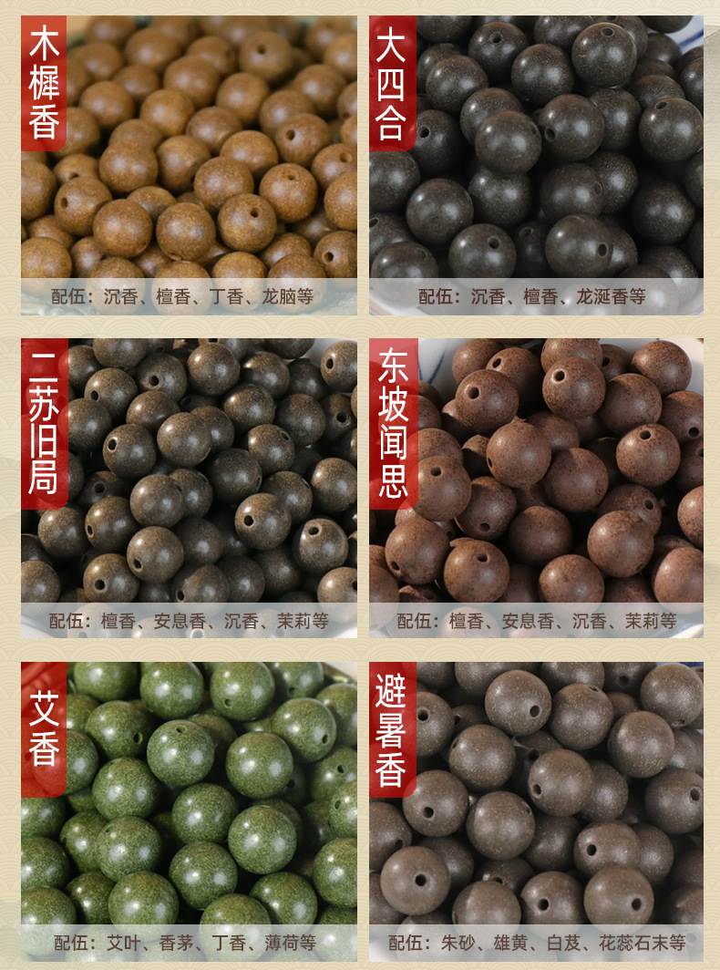 Dongge Zangchun (дерево) (натуральный и без отдушек); Антарктический День Рождения (Огонь) (натуральный и без отдушек); Xizhai Yayi (золото) (натуральный и без отдушек); Бэйюань Минфан (вода) (натуральная, без отдушек); Четыре сезона, прозрачный вкус (земля) (натуральный, без отдушек); Мэнлинсян (натуральный, без отдушек); Освежающий (летняя жара) благовония (натуральные, без отдушек); Aixiang (благовония от комаров) (натуральные и без отдушек); Аромат Qingmiao (натуральный и без отдушек); Мисс Флор (натуральный, без отдушек); Эли Чжэньчжунсян (натуральный, без отдушек); Аромат османтуса (натуральный и без отдушек); Цянь Лин Сян (натуральный, без отдушек); Аромат шафрана (натуральный и без отдушек); Да Сихэ (натуральный, без отдушек); Фиолетовый воздух идет с востока (натуральный, без отдушек); Белый янтарный песок (натуральный, без отдушек); Семь ароматов и двенадцать эссенций (натуральные и без отдушек); Твердый золотой благовония (натуральный, без ароматизаторов); Цзянчжэньсян (натуральный и без отдушек); Весенний аромат в снегу (натуральный и без отдушек); Жасмин (натуральный, без отдушек); Дыхание мышечного аромата (естественный и без отдушек); Цинлин Марроу (натуральный, без отдушек); Nanchao Legacy Dreams (естественно без отдушек); Натуральный аромат (натуральный и без отдушек); Цветочный аромат (натуральный и без отдушек); Тибетские благовония Тяньму (натуральные, без ароматизаторов); Детский аромат (натуральный и без отдушек); Аромат Dongpo Wensi (натуральный и без отдушек); Бывший дом Эрсо (без отдушек и ароматизаторов); Аромат Suhe (натуральный и без отдушек); Освежающий аромат (натуральный и без отдушек); Красный мускус (натуральный, без отдушек); Колечки «Слёзы Чёрного Дракона» (Натуральные, Без Аромата); Черный дыхательный аромат для мышц (натуральный, без отдушек); Формула аромата (распределена случайным образом)