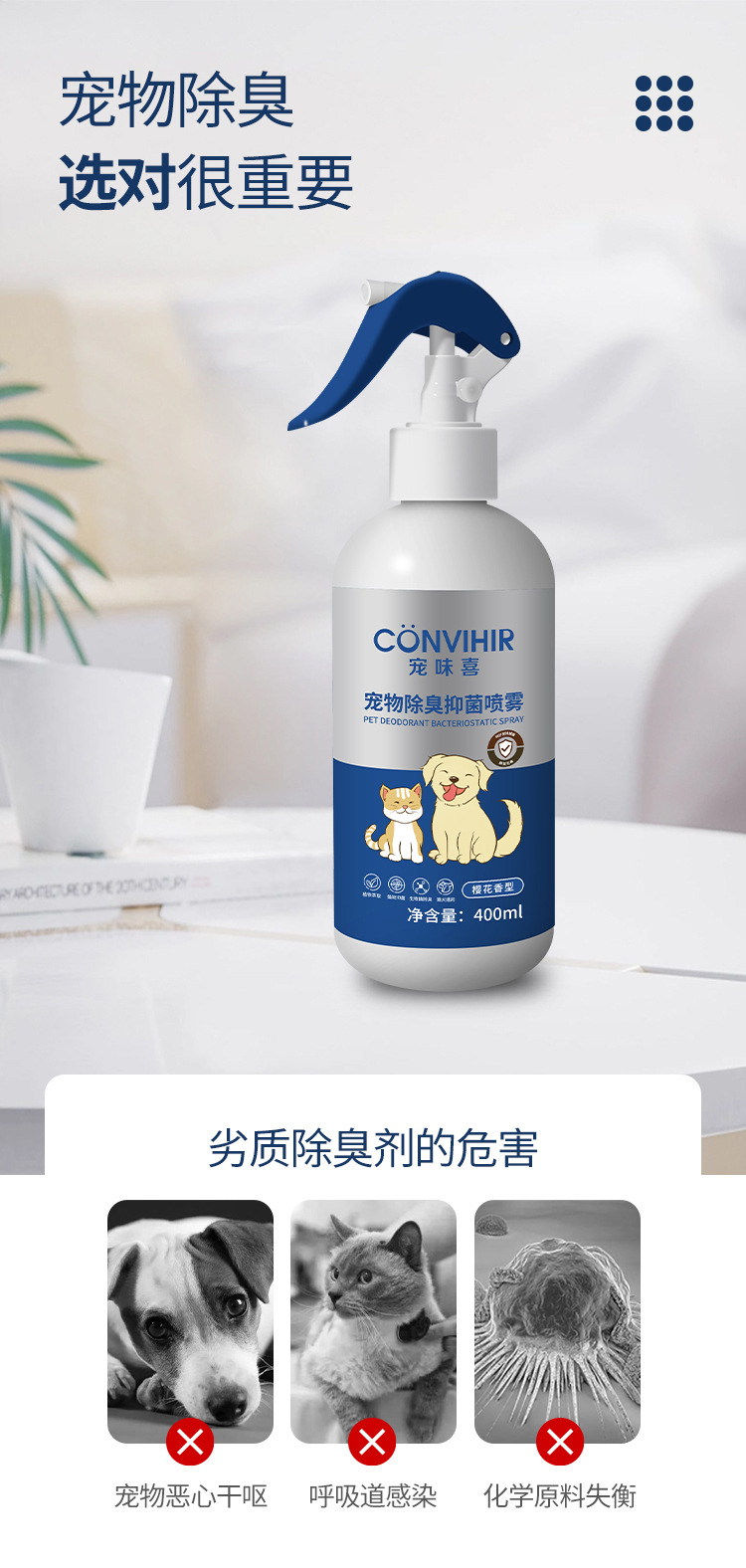 Спрей для удаления запахов домашних животных и антибактериальный, 400 мл, биоферментный дезодорант, устранитель запаха кошачьей мочи, освежитель воздуха для дома, с отрицательными ионами
