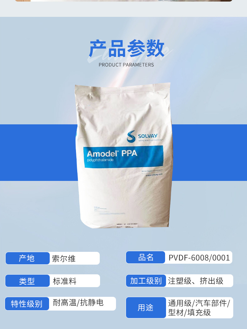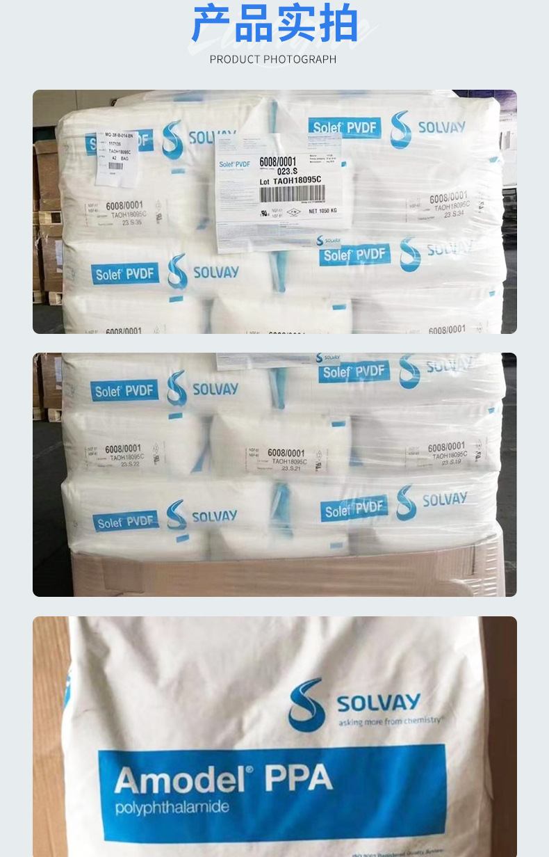 ПВДФ American Solvay 6008/0001, высокотемпературный, устойчивый к гидролизу, низковязкий гомополимер, сырье в частицах, антистатический
