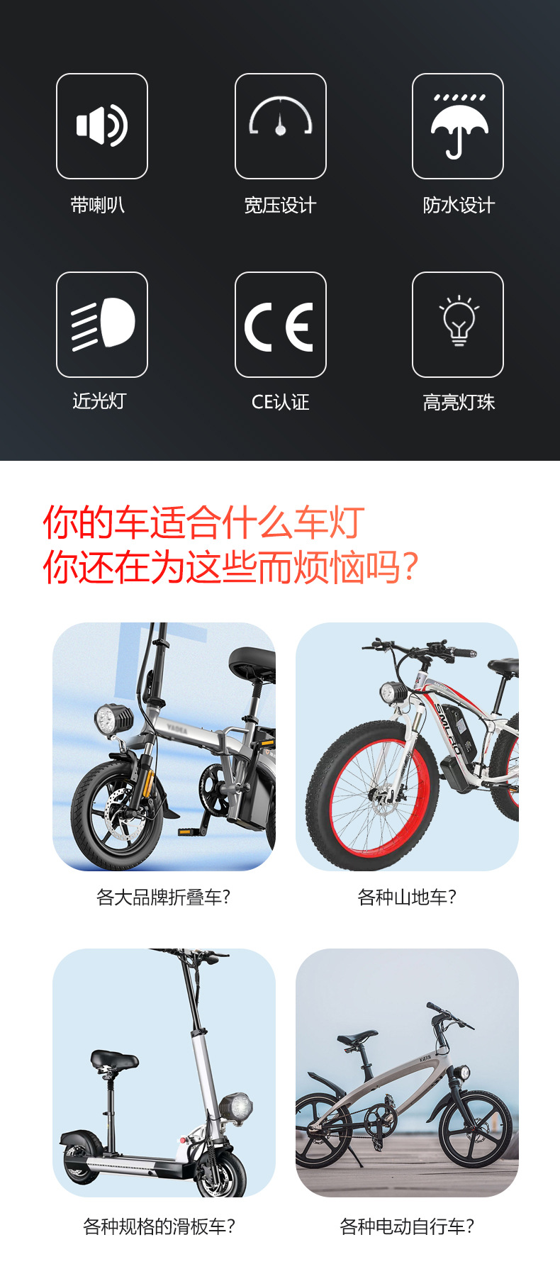 Фара для электровелосипеда с гудком, динамик для электроскутера, аксессуары для складного велосипеда, сертифицировано CE, высокая яркость