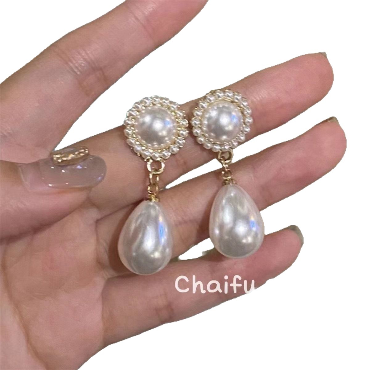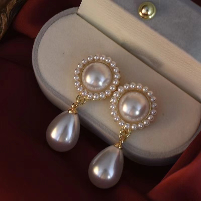 Жемчужный придворный французский ретро высокого уровня литературной текстуры капли воды серьги серьги темперамент