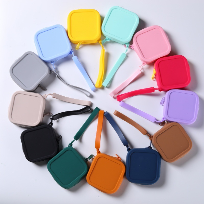 Трансграничная сеть красная силиконовая мелкая мелкая квадратная сумка портативная косметическая сумка кабель для передачи данных сумка для хранения фабрики оптом