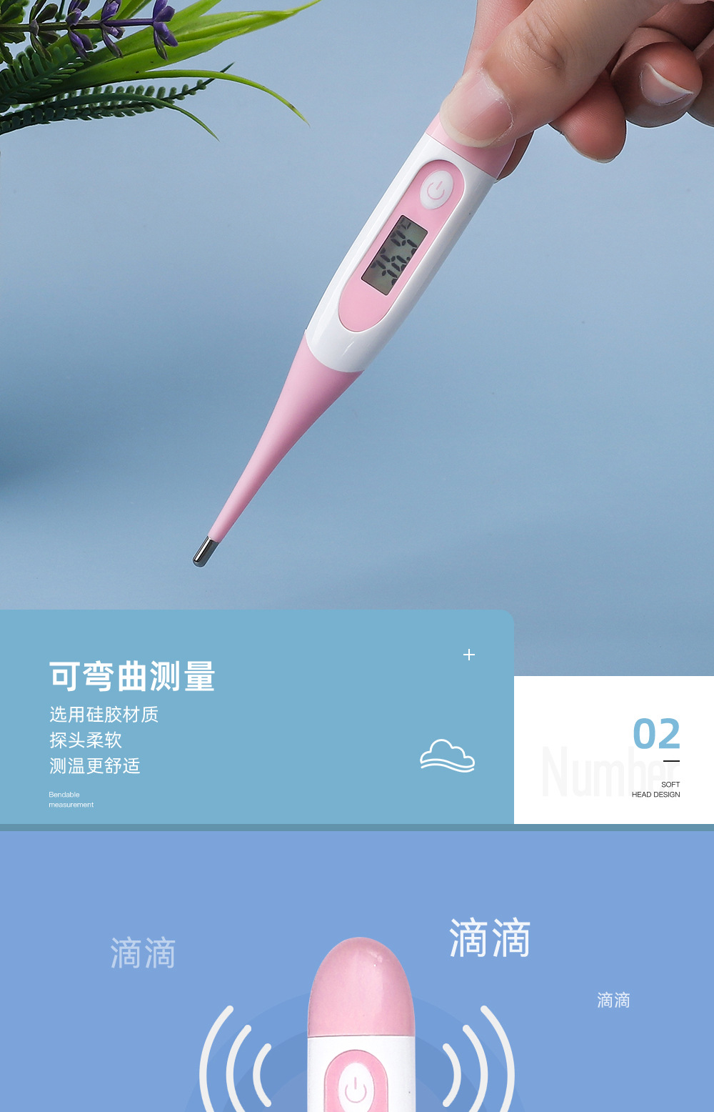 Внешняя торговля водонепроницаемая мягкая головка электронный термометр для детей оральный термометр для взрослых подмышки цифровой термометр может быть настроен