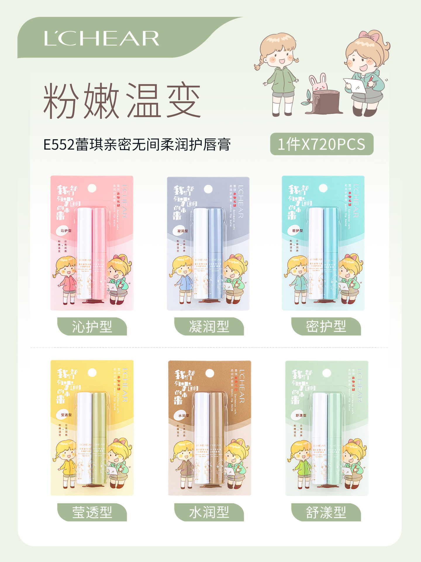 E605 Увлажняющий бальзам для губ Lucky Vaseline; E586 Детский бальзам для губ с экстрактом леких меда; E547 Бальзам для губ с насыщенным проникающим эффектом Lei Qi; E575 Leqi Cool Мужской прозрачный бальзам для губ; E552 Lucky Intimate Смягчающий бальзам для губ; E528 Leiqi модный мужской бальзам для губ; E584 Увлажняющий мужской бальзам для губ Lucky Light; E599 Leiqi Benrunhuaneng мужской бальзам для губ; E606 Увлажняющий бальзам для губ с экстрактом фруктов Lucky Fruit; E607 Бальзам для губ Leqi Love Honey; E608 Увлажняющий бальзам для губ Lucky Aloe; E609 Лединый бальзам для губ с богатым проникающим действием; E610 Бальзам для губ Leqi Qin Yang Tipsy; E611 Детский увлажняющий бальзам для губ Leqi; E612 Leqi Little Cute Детский бальзам для губ; E613 Смягчающий бальзам для губ с экстрактом счастливого растения; E614 Lucky Lanolin Увлажняющий и разглаживающий бальзам для губ; E615 Luqi Мягкий и прочный бальзам для губ с экранным эффектом; E616 Бальзам для губ Lucky Milk Smooth and Soft; E617 Lei Qi Мягкий и увлажняющий бальзам для губ; E618 Leqi Увлажняющий освежающий бальзам для губ; E619 Глянцевый увлажняющий бальзам для губ с экстрактом счастливого растения; E620 Увлажняющий бальзам для губ Lucky Zhiying; E621 Бальзам для губ с фруктовым вкусом «Свежесваренный» Lei Qi для глубокого ухода; E622 Бальзам для губ Lucky Water Light Color; E623 Мягкое масло для губ Lacey Fruit Honey; E624 Leqi Cool Мужской прозрачный бальзам для губ; E625 Leqi Cool Мужской прозрачный бальзам для губ; E626 Детский бальзам для губ Lucky Bear; E627 Мягкий бальзам для губ Lucky Intimate; E663 Бальзам для губ Leqi Bang Bang; E664 Элегантный водянистый бальзам для губ Lacey; E665 Leqi увлажняющий растительный экстракт чистый бальзам для губ; E666 Нежный бальзам для губ Leqi Transformation; E667 Бальзам для губ Leqi Yingze, меняющий цвет; E668 Легкий бальзам для губ Lacey; E669 Детский бальзам для губ Luqi Fruit Honey Plant Extract; E670 Lucky Легкий и освежающий мужской бальзам для губ; E671 Lucky Watery Увлажняющий мужской бальзам для губ; E701 Бальзам для губ Lucky Youth Whisper; E702 Увлажняющий бальзам для губ Lucky Fresh; E703 Luqi Мягкий бальзам для губ против высыхания; E704 Leiqi Yuexiang увлажняющий бальзам для губ; E705 Leqi Мужской бальзам для губ для хранения воды; E649 Кристальный бальзам для губ Lace Water Surging; 635 Увлажняющий бальзам для губ с экстрактом цветов Лэй Ци; E685 Бальзам для губ с гиалуроновой кислотой Lei Qi; E687 Бальзам для губ с маслом камелии Lei Qi, шелковистый и гладкий; E679 Маска для губ с желе «Леди Сяоань»; E692 Увлажняющий бальзам для губ с медом Lei Qi