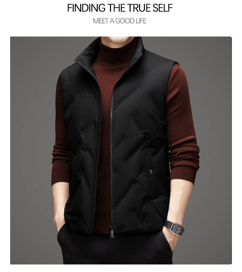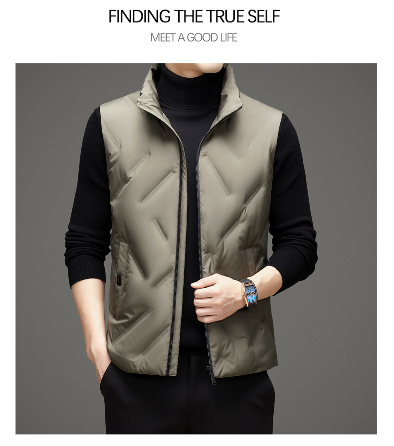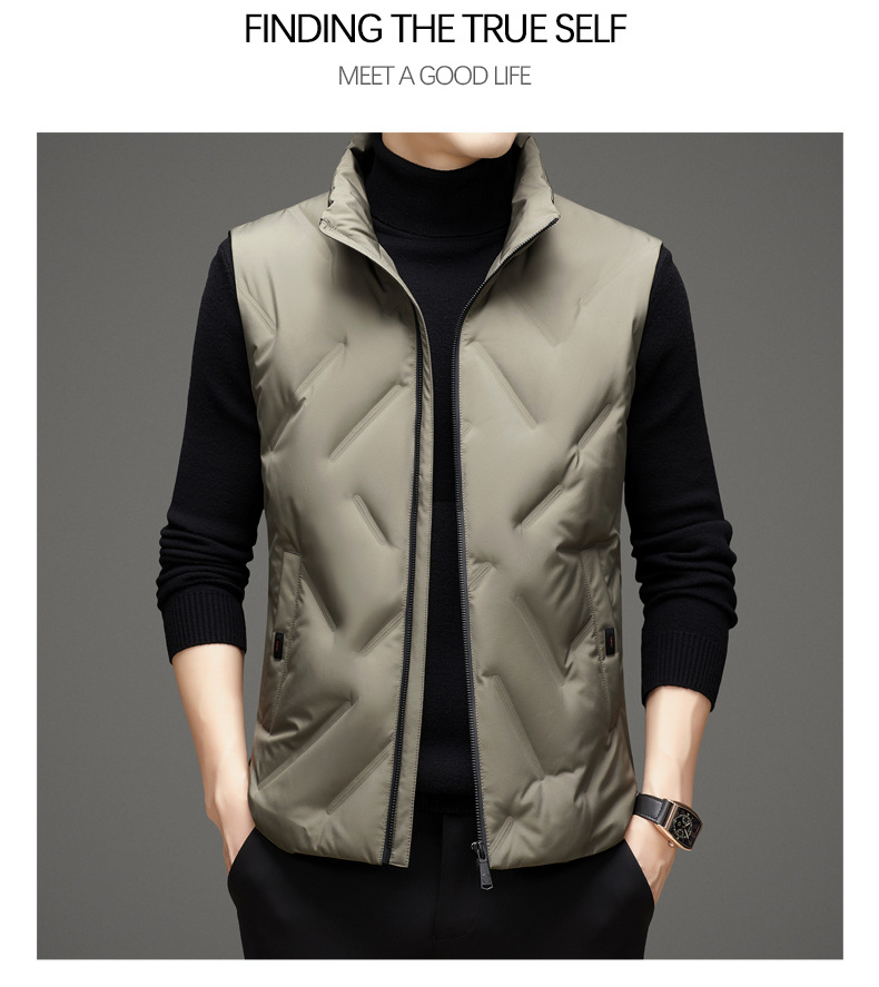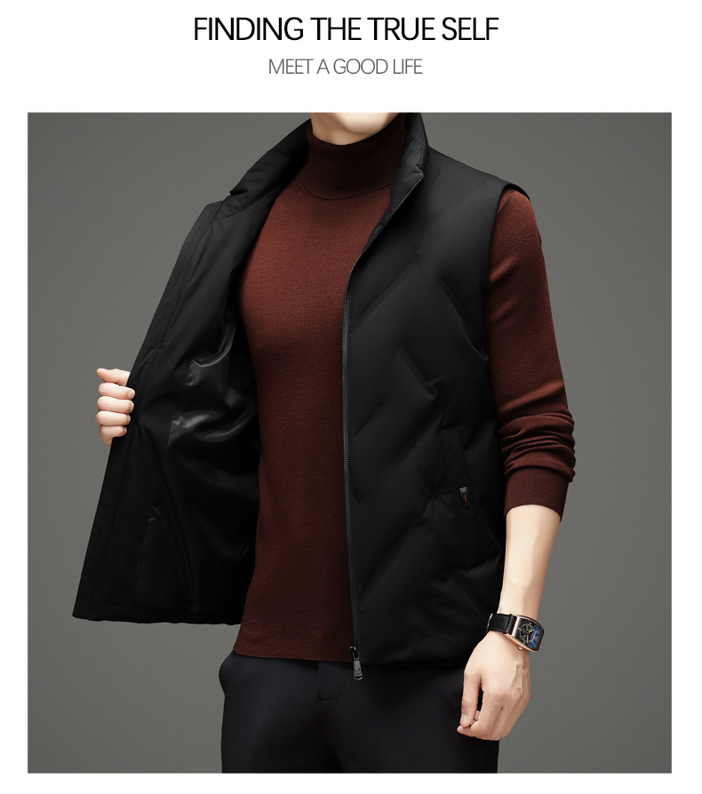 Мужской простой и универсальный пуховый жилет 2025 года, новая осенне-зимняя теплая верхняя одежда для активного отдыха, 90% белый утиный пух.