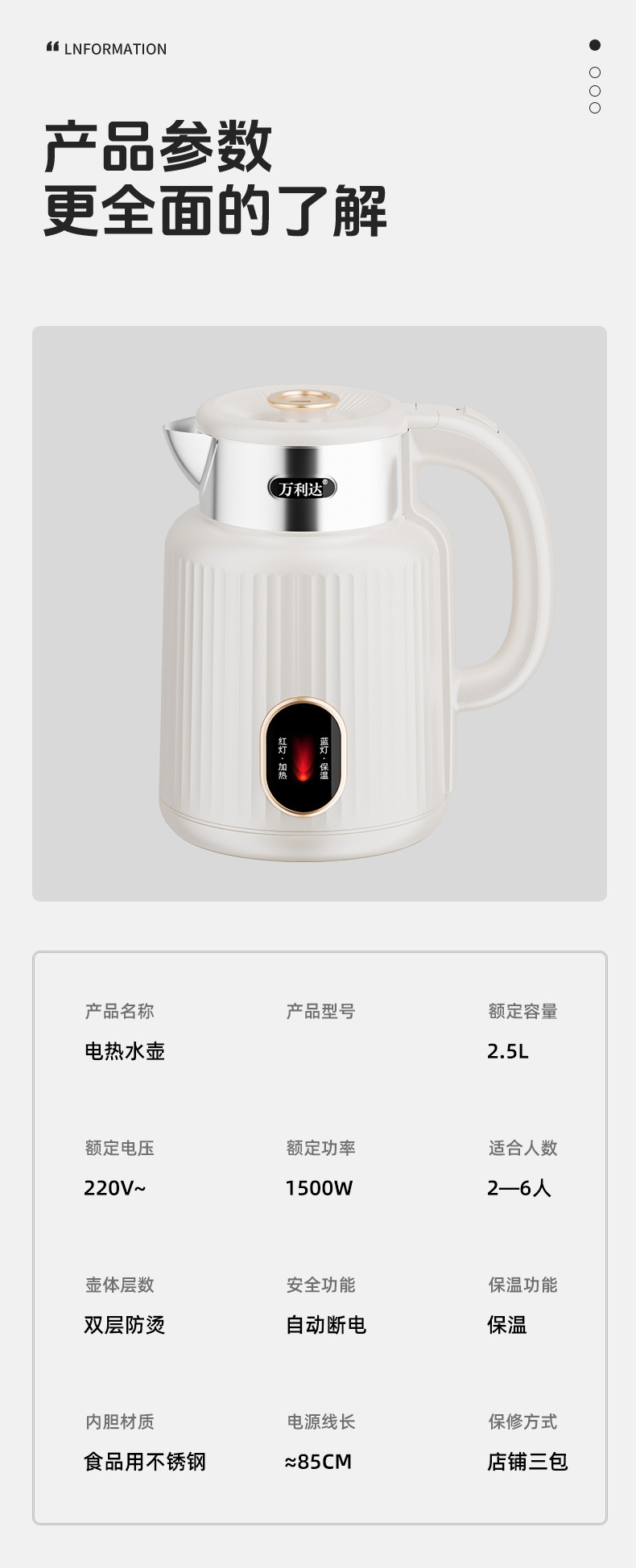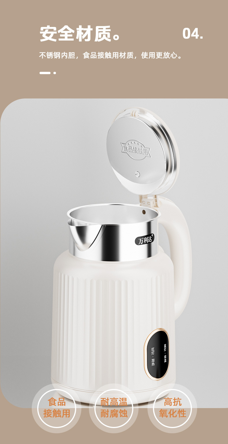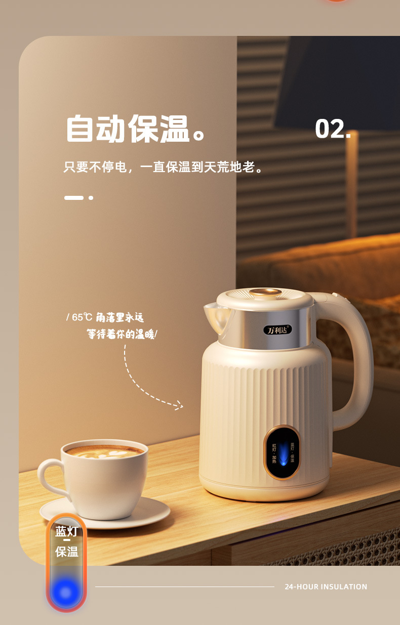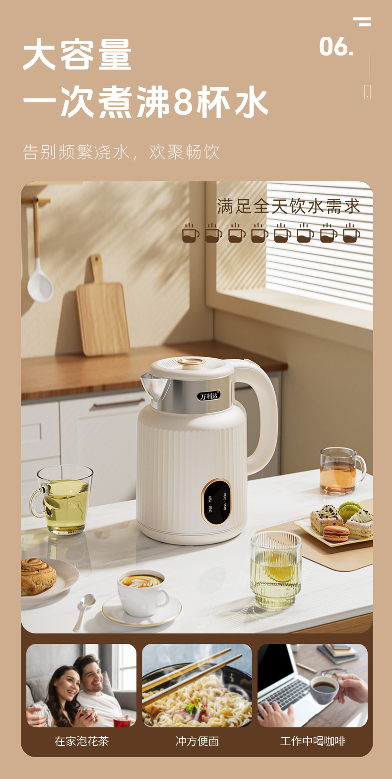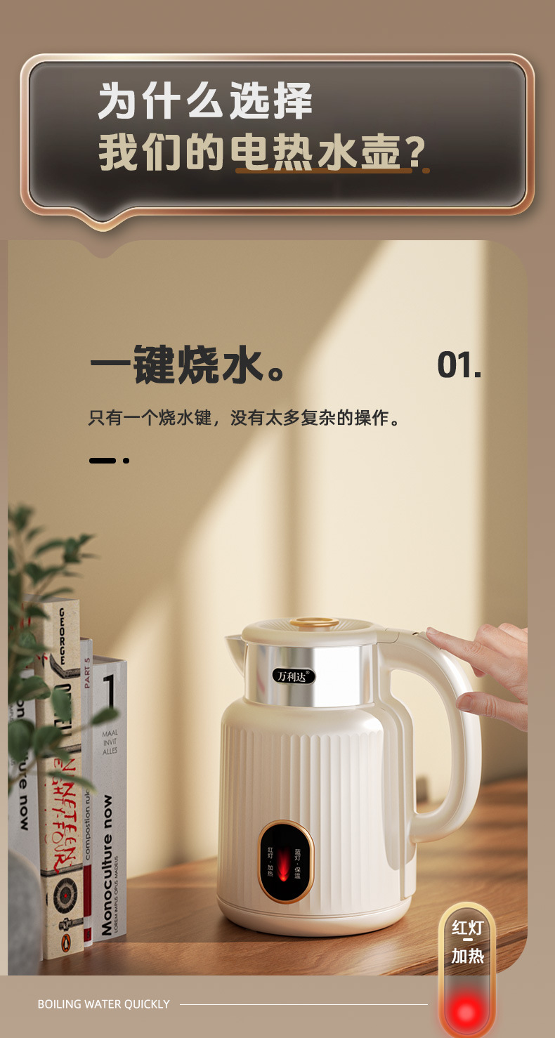 Электрический чайник Zhengwanda большой емкости, изолированный, из нержавеющей стали, для домашнего использования, с автоматическим отключением, подходит для использования в отелях.