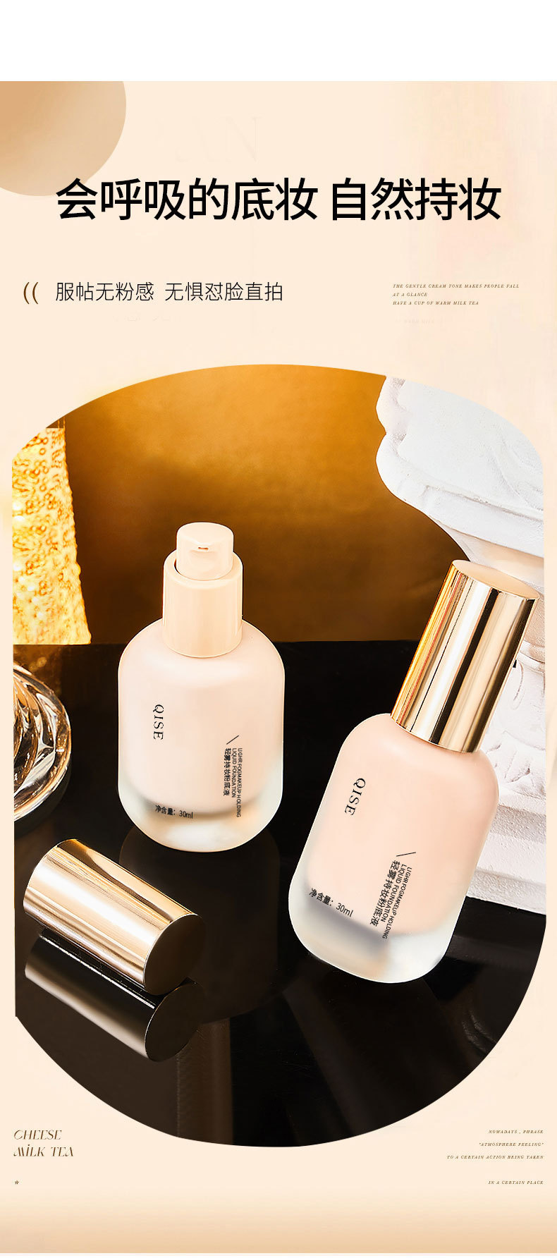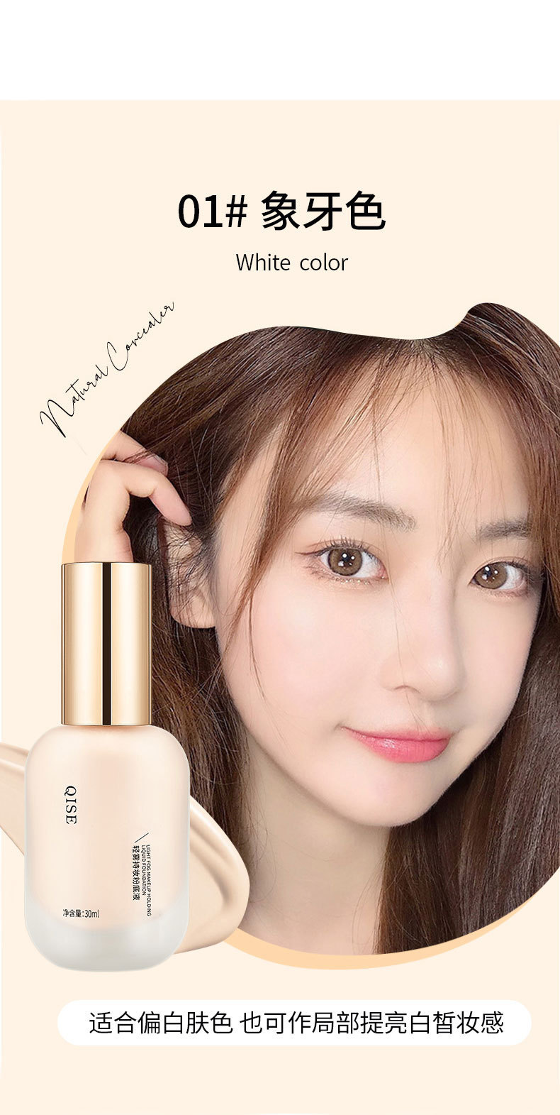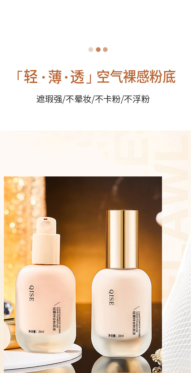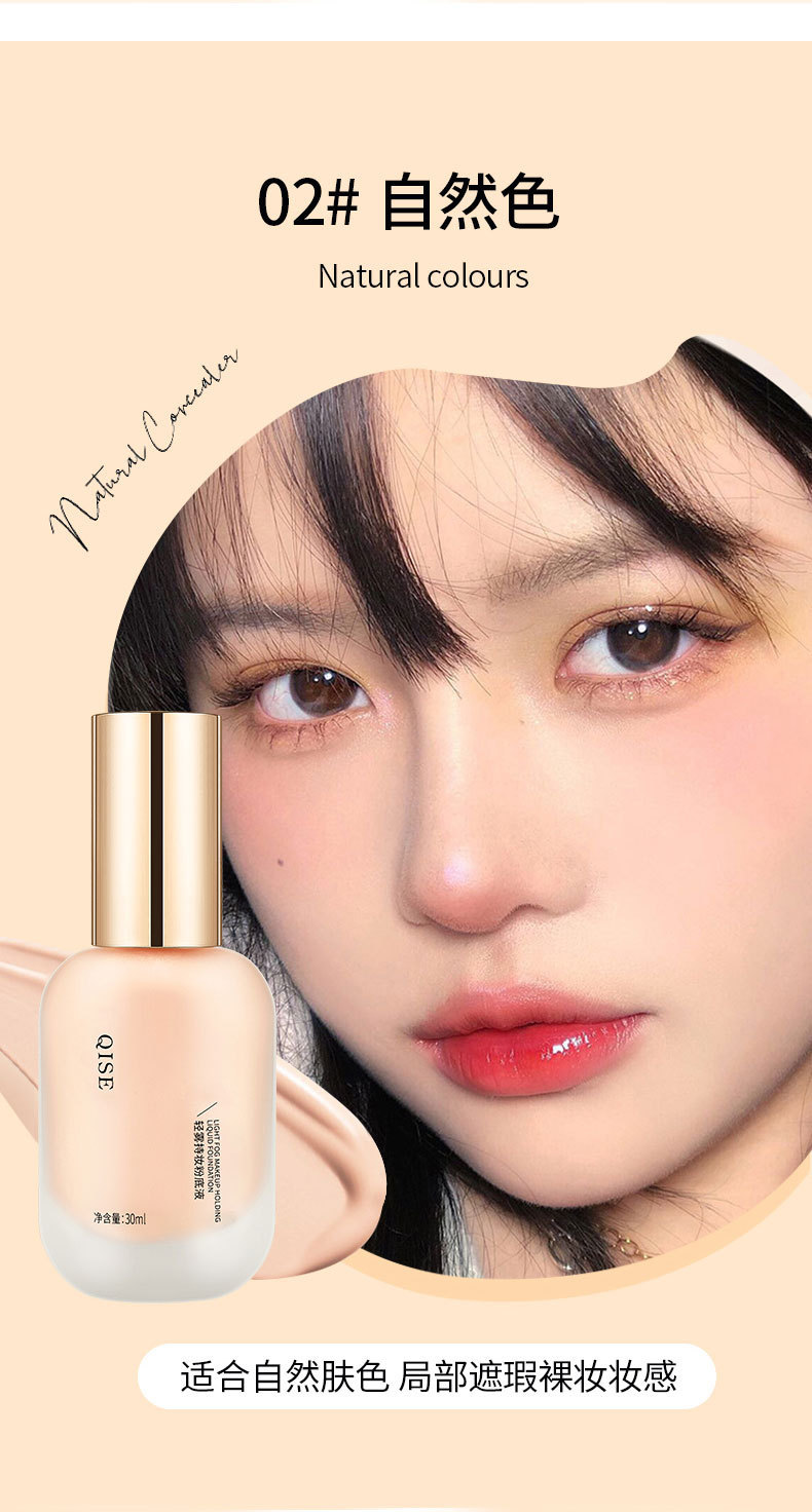 Жидкость для тонального крема QISE легкий туман, держите макияж маскирующего средства для контроля масла без снятия макияжа натуральный водонепроницаемый анти-пот сухой кожи кожи студенческий крем bb
