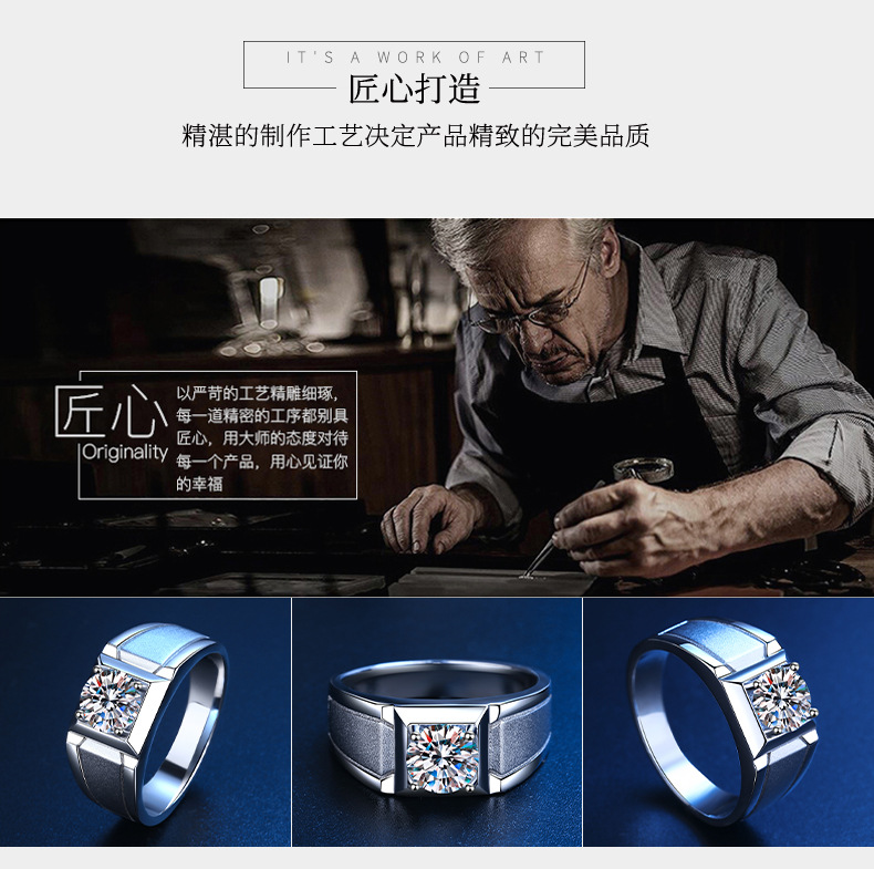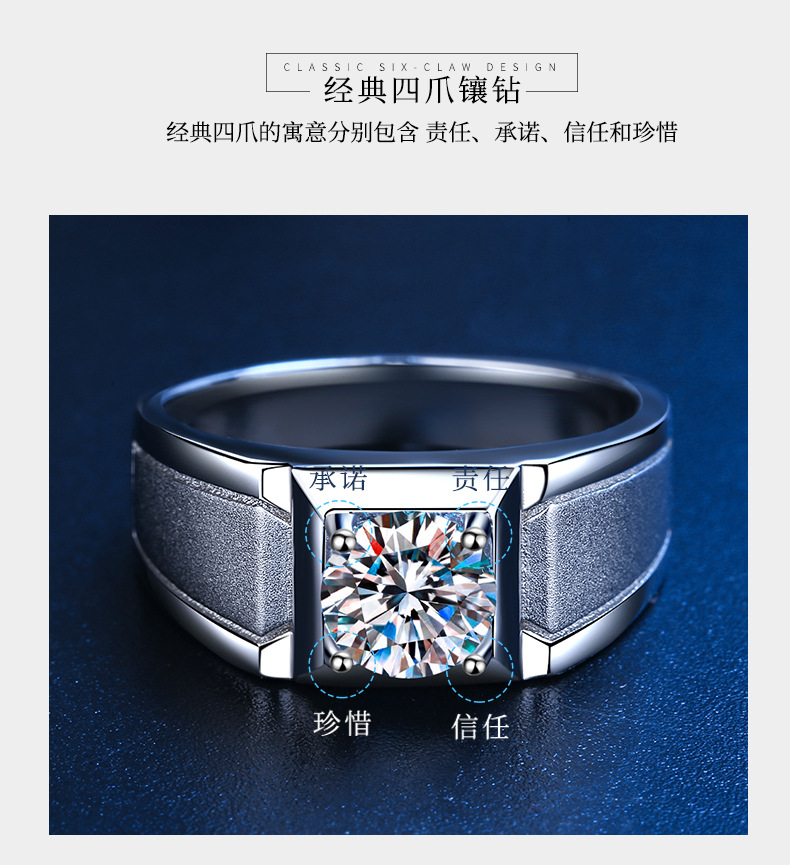 Подлинное D-цветное кольцо из Мозамбика с бриллиантом мужское серебро один карат