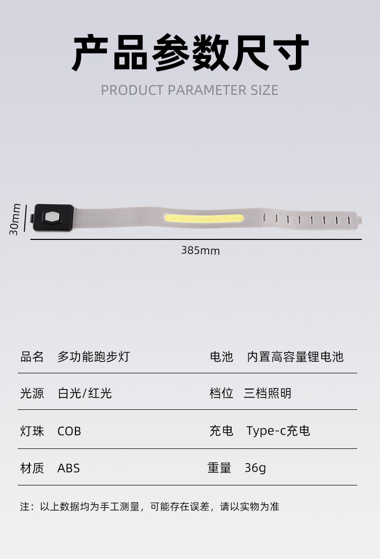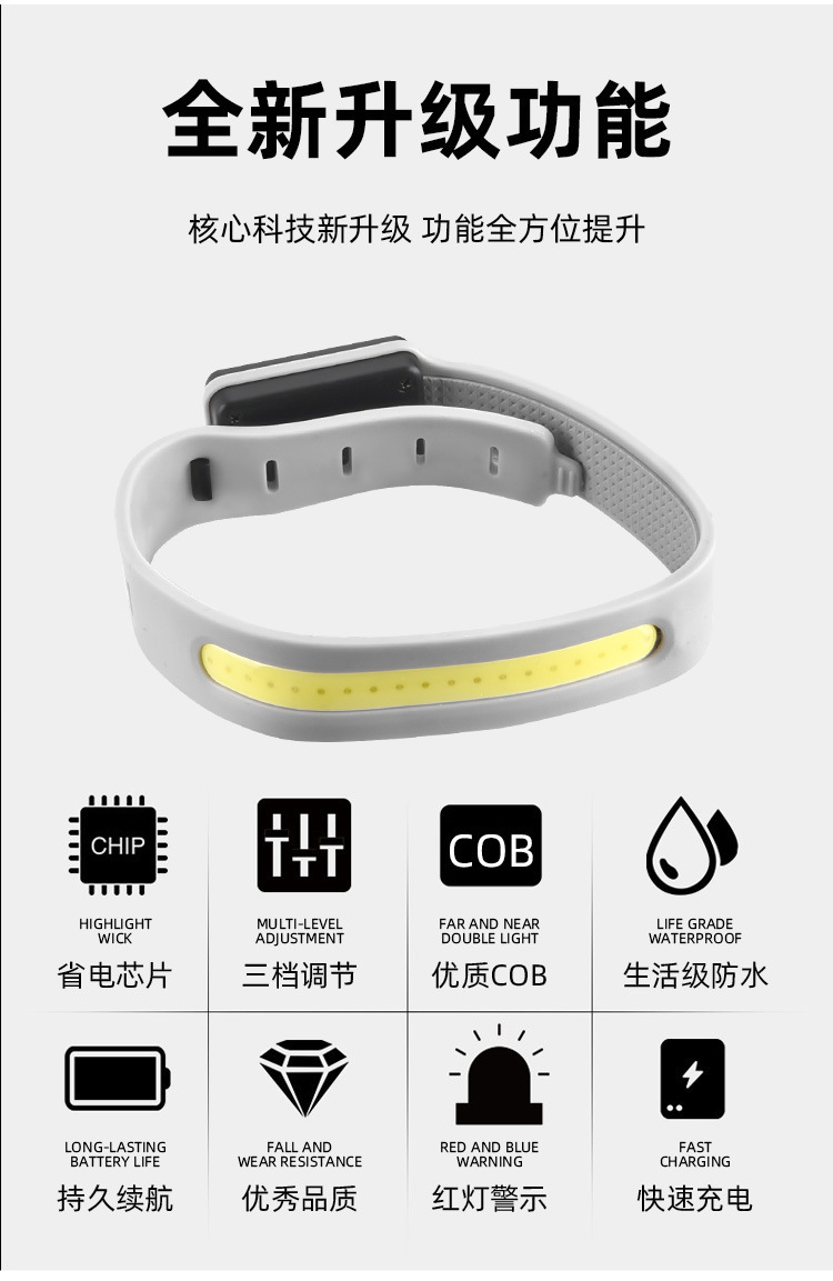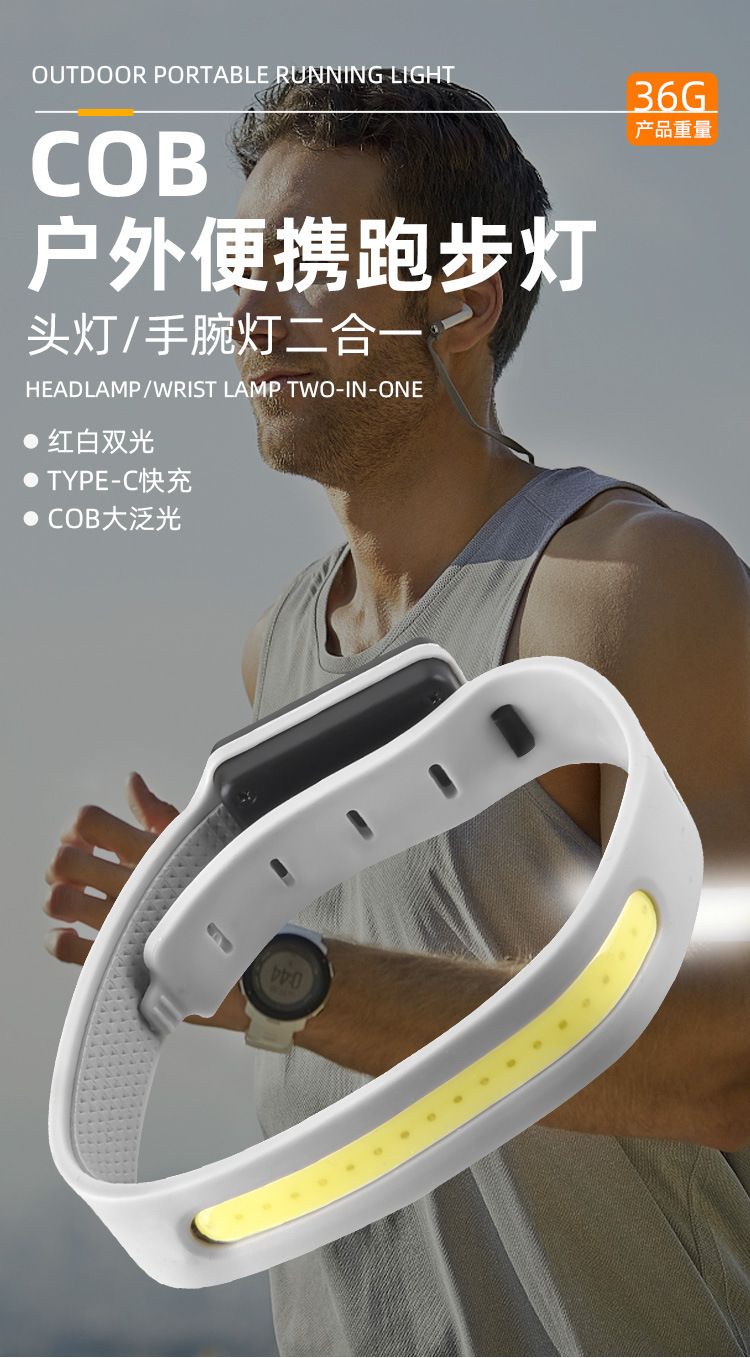 Новый водонепроницаемый водонепроницаемый и устойчивый к поту световой беговой свет заряжаемый регулируемый фонарик на открытом воздухе спортивные светильники