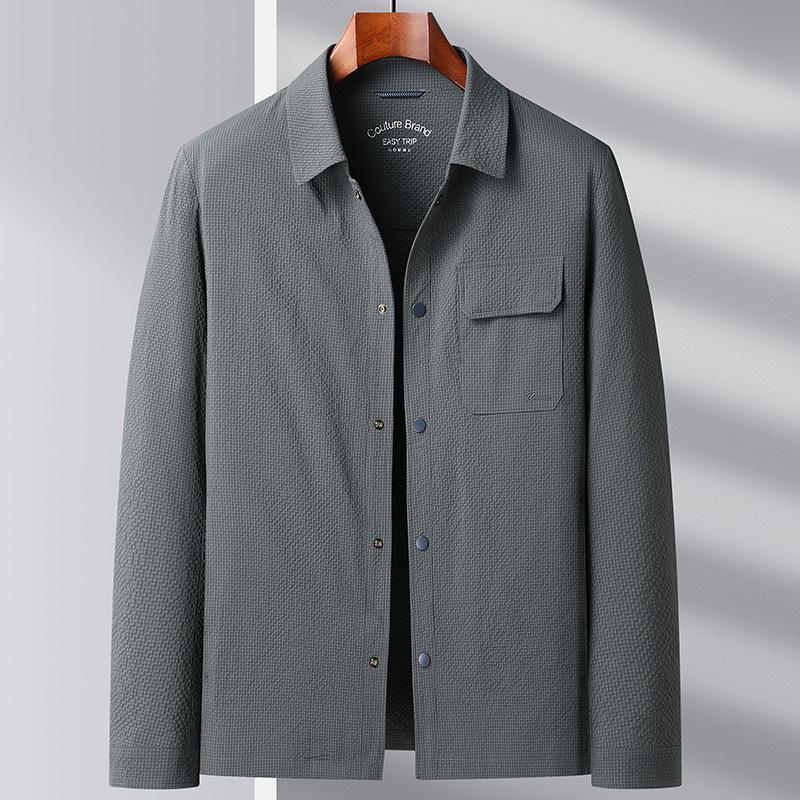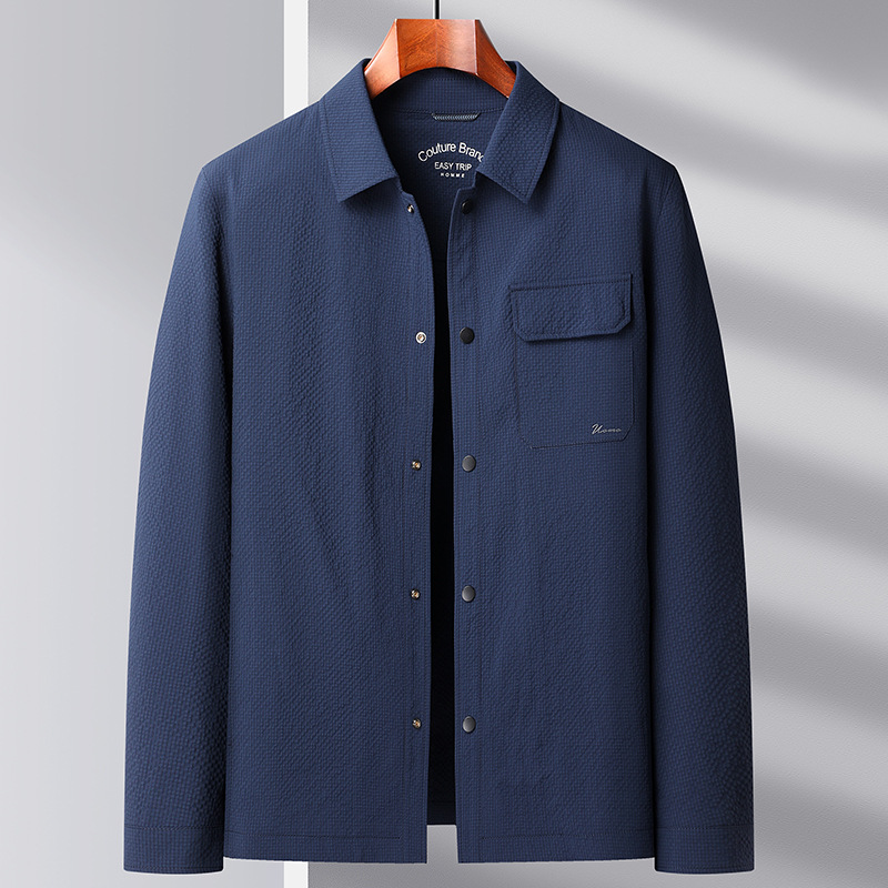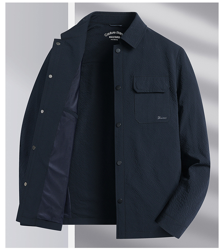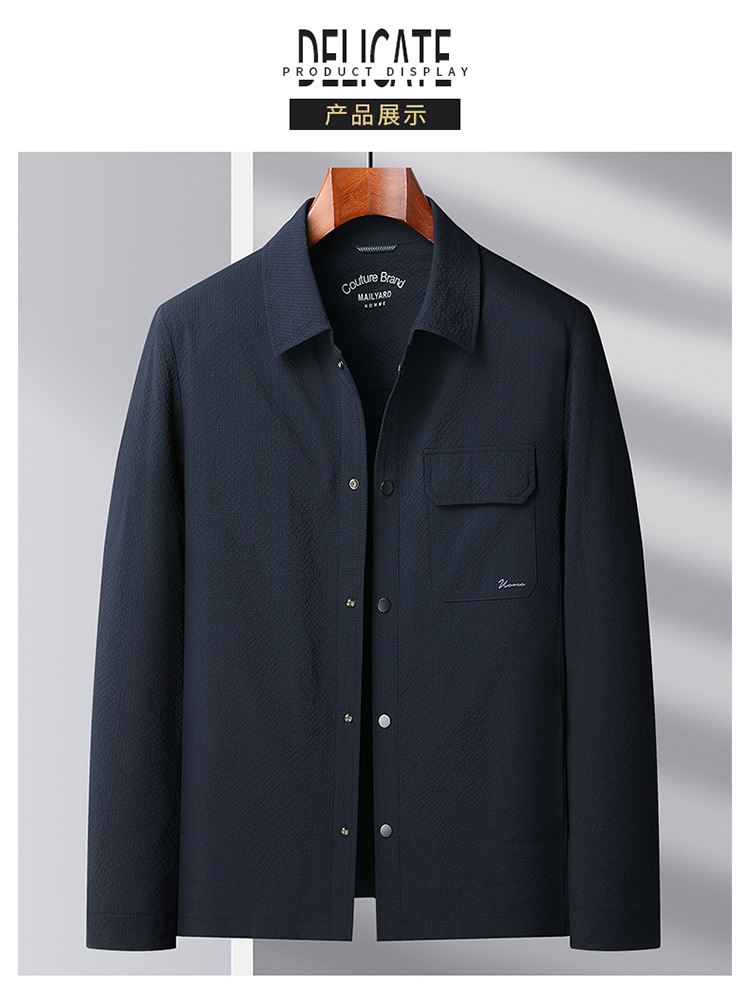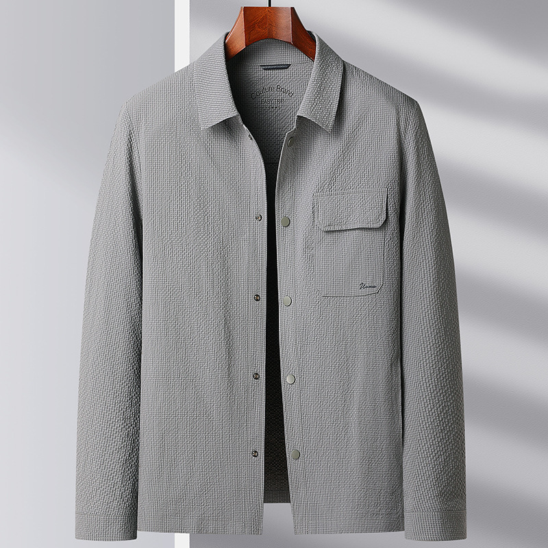 Мужская куртка весенне-осеннего стиля 2025 года, с отложным воротником, в стиле рабочей одежды, молодежная и роскошная деловая текстурированная повседневная куртка.