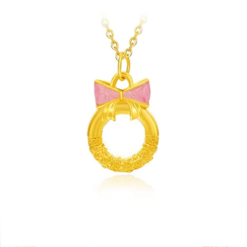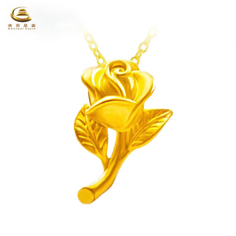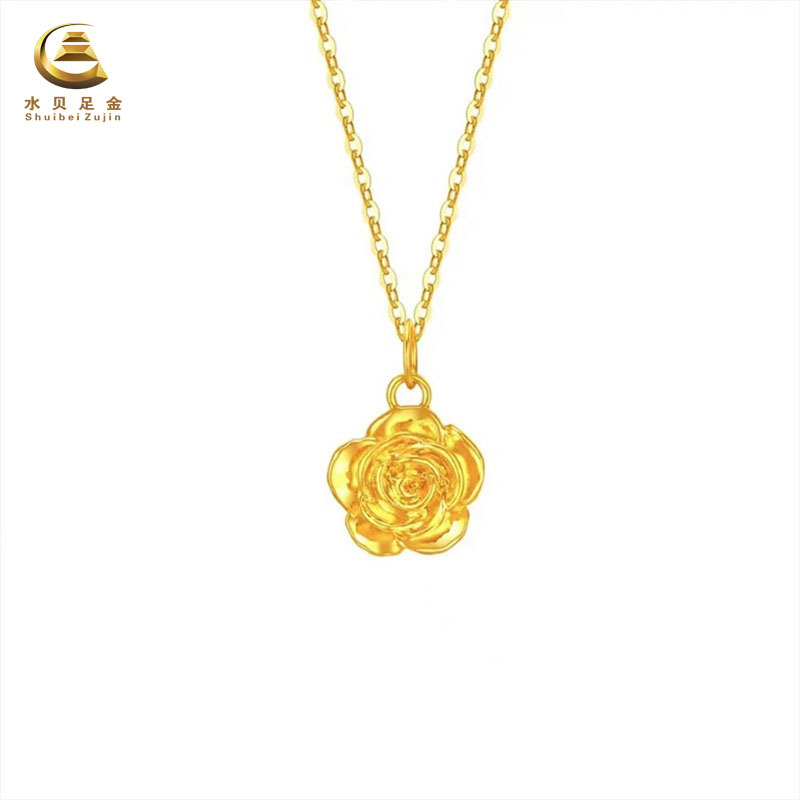 Золотой оптовый кулон из чистого золота 999 пробы, женская розовая корона, комплект 520, цепочка, китайский подарок на День святого Валентина, горячий стиль