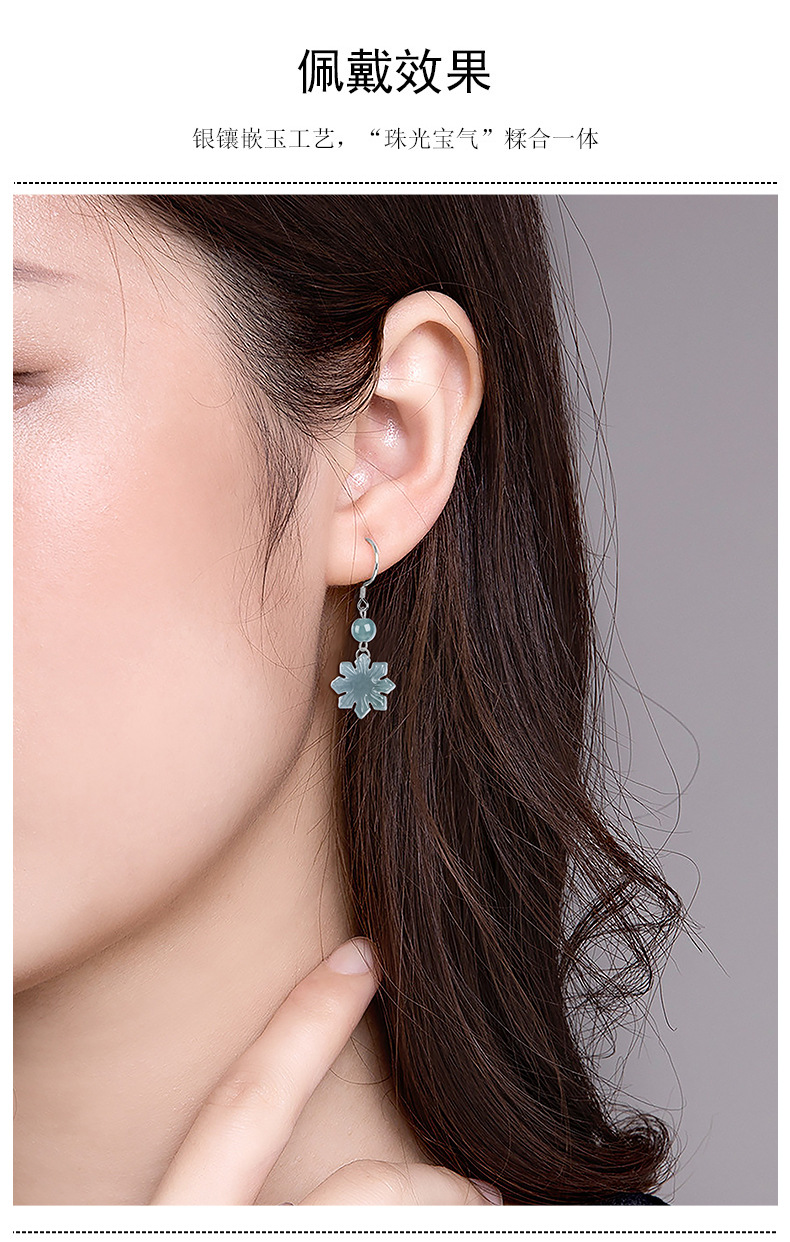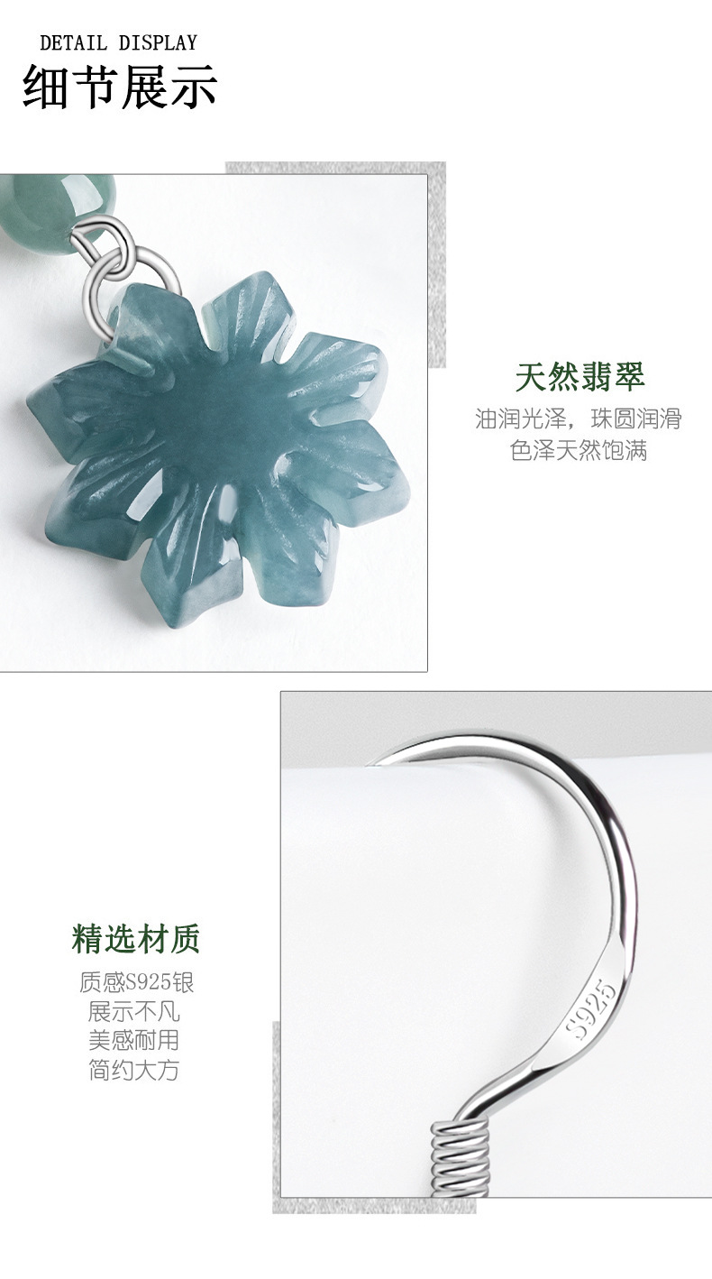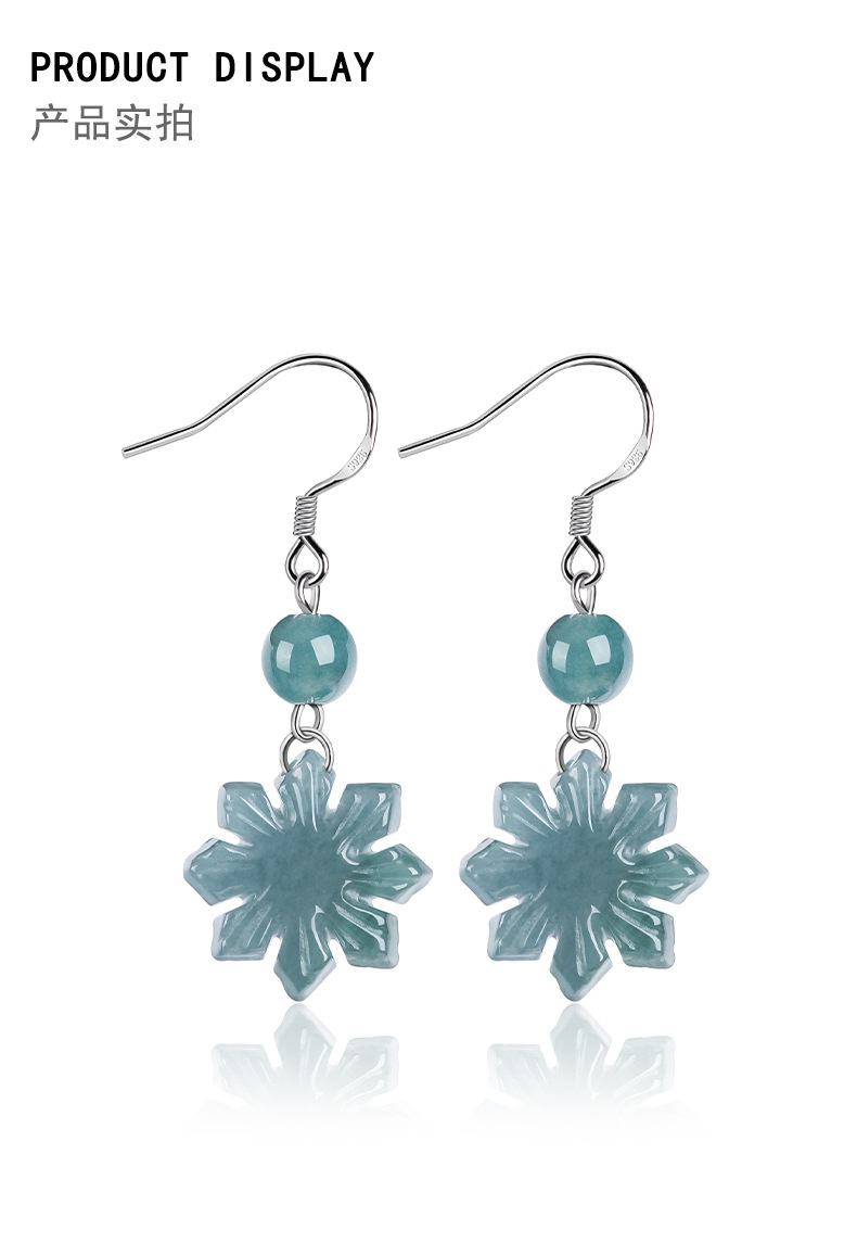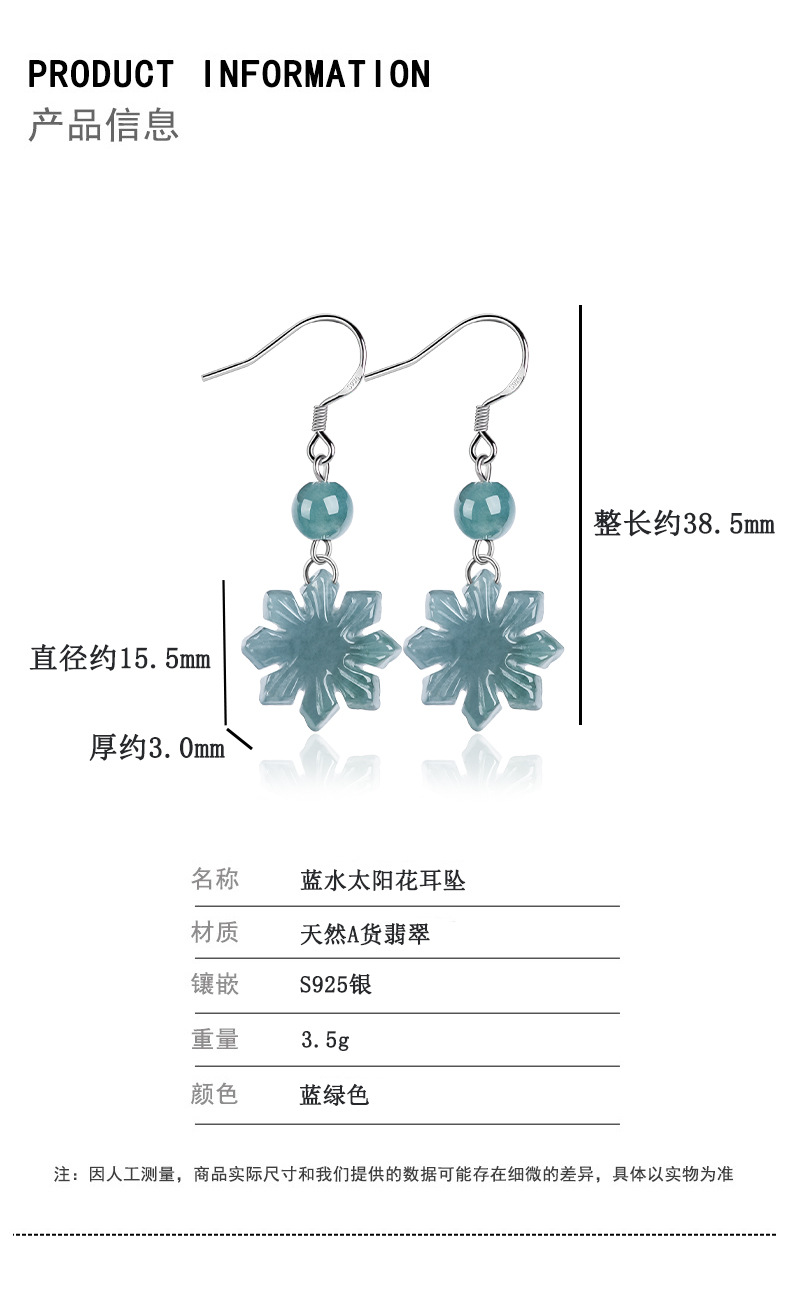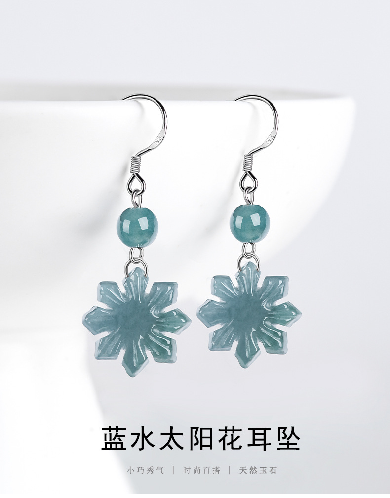 S925 Серебряный инкрустированный натуральный А груз Изумрудная голубая вода Солнечный цветок Серьги Ice Seed Нефритовый древний стиль Женские серьги-серьги