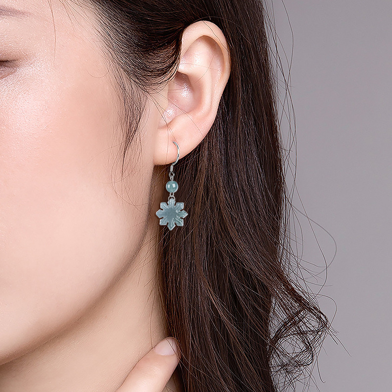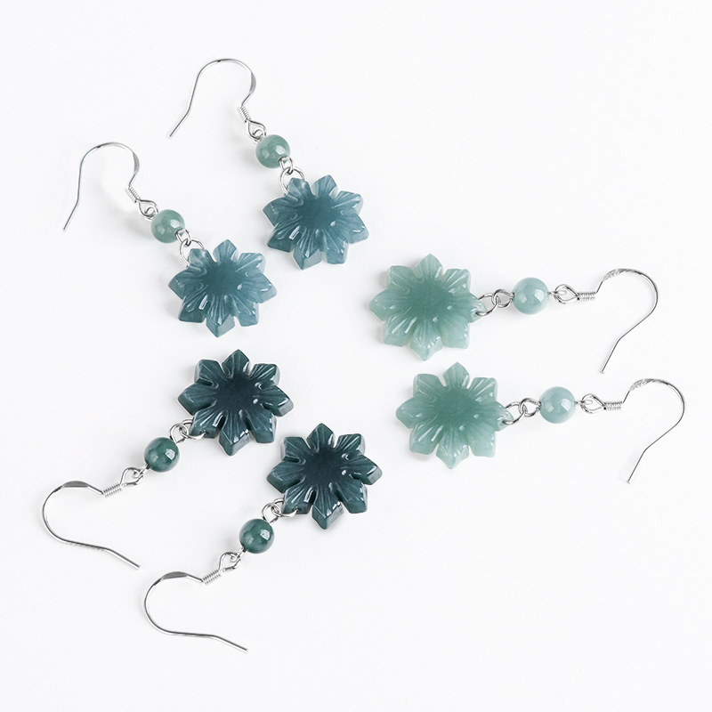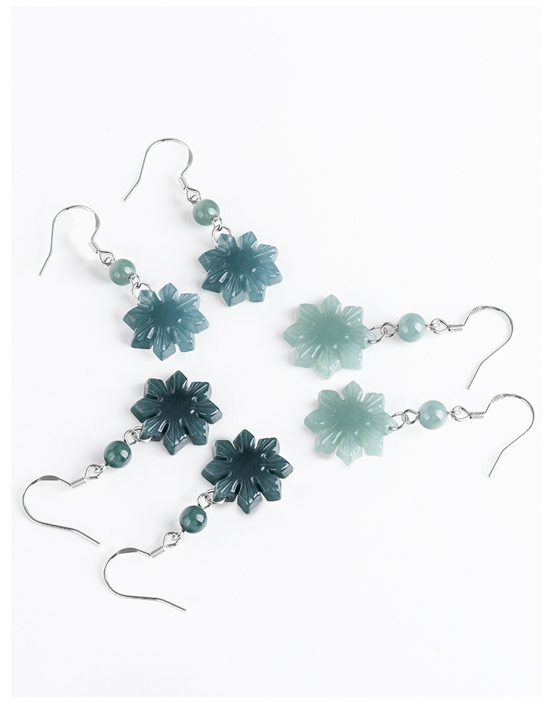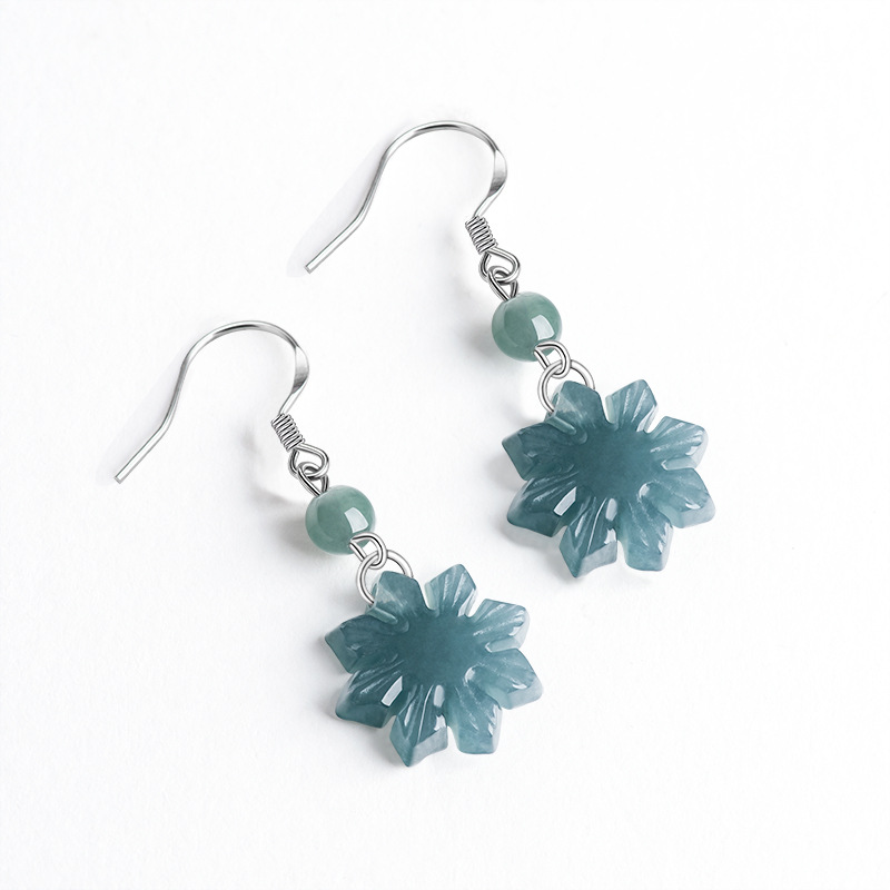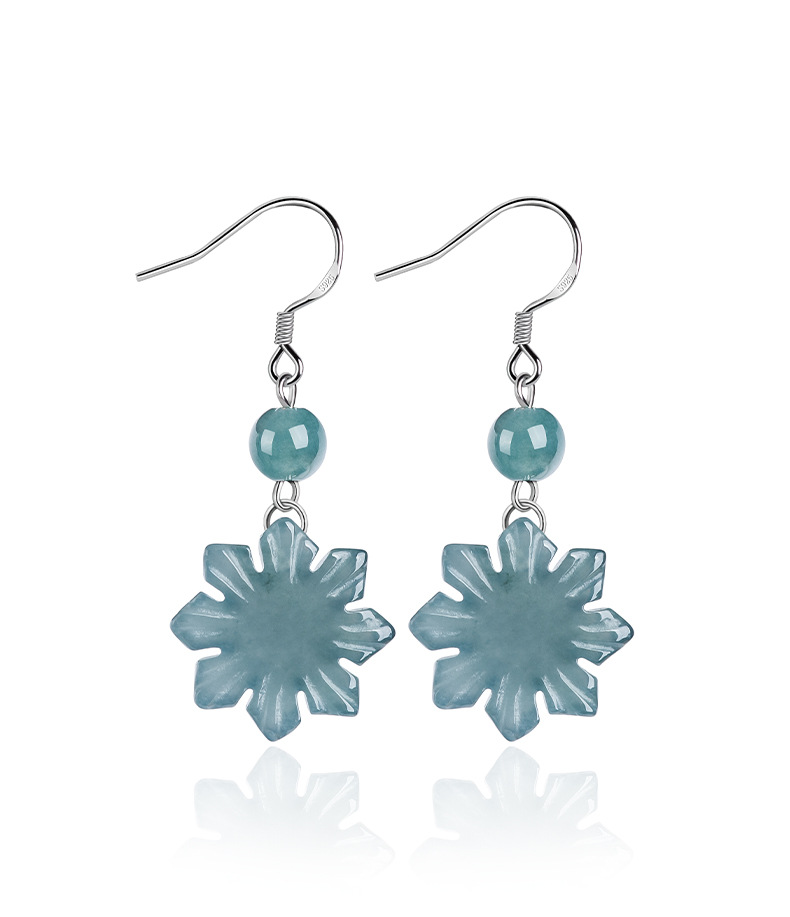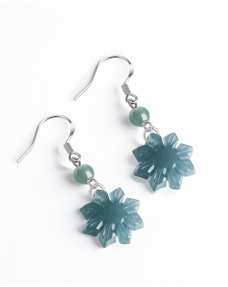S925 Серебряный инкрустированный натуральный А груз Изумрудная голубая вода Солнечный цветок Серьги Ice Seed Нефритовый древний стиль Женские серьги-серьги