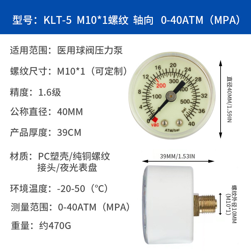 Медицинский баллонный насос для расширения давления Специальный медицинский медицинский манометр Y40Z 40BAR/ATM/600PSI