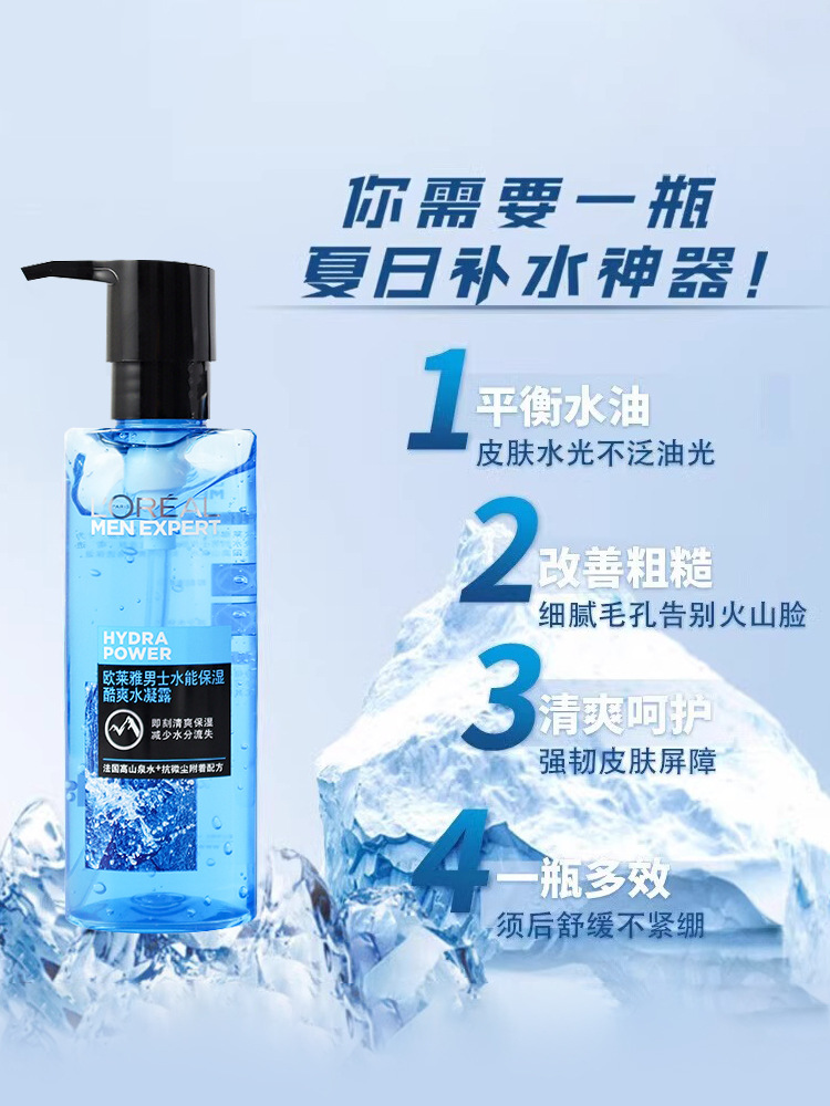 L'Oreal Men Water может увлажнять прохладный водяной гель 120 мл тонизирующий гель увлажняющий гель освежающий лосьон