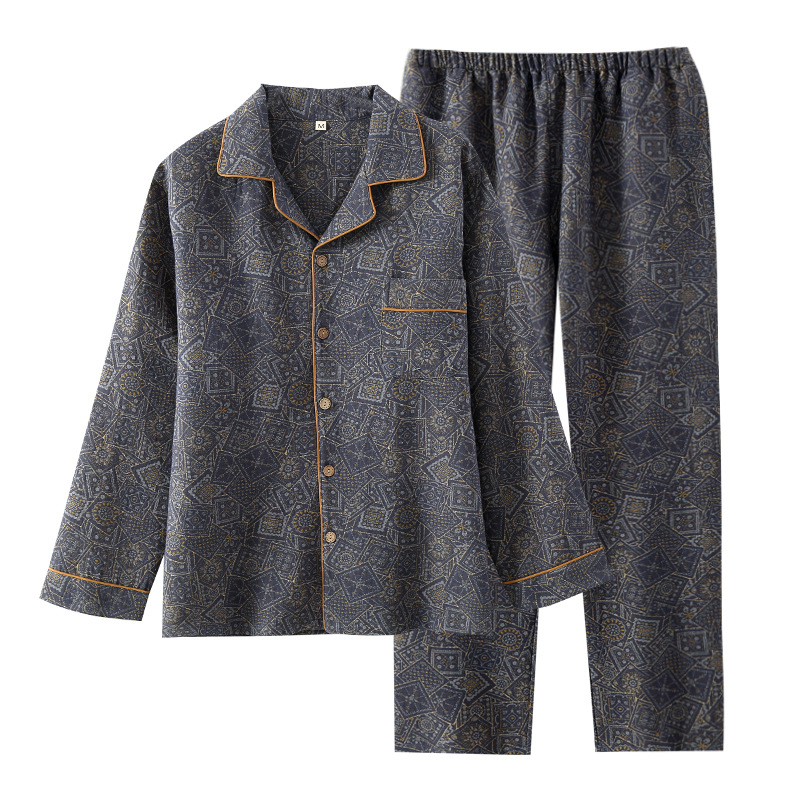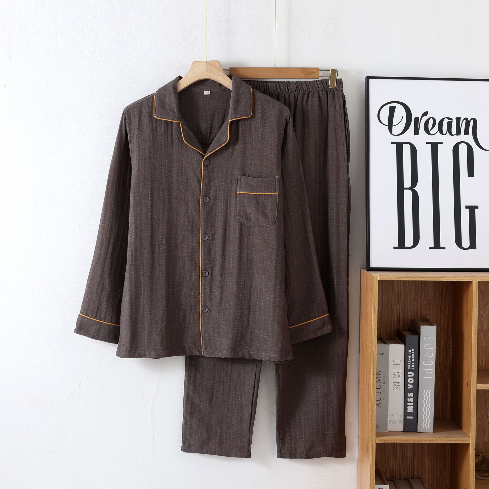 Хлопок трикотажный двухслойный марля простой мужской весенний и осенний летний пижамы с тонкими длинными рукавами можно носить на улице
