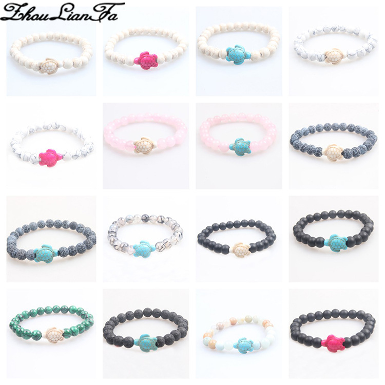 Чжоу Ляньфа трансграничный новый зеленый сосновый камень черепаха вулканический камень белый сосновый камень несколько мужских и женских эластичных браслетов оптом