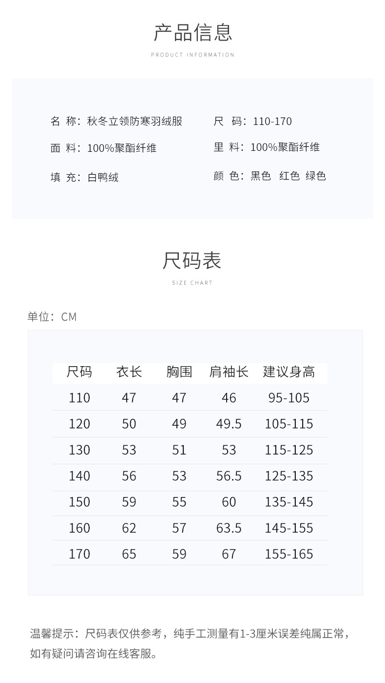 110cm; 120cm; 130cm; 140cm; 150cm; 160cm; 170cm