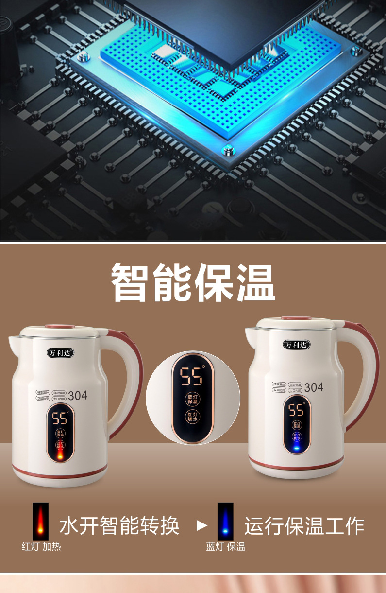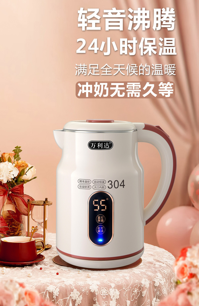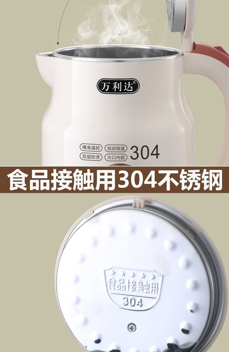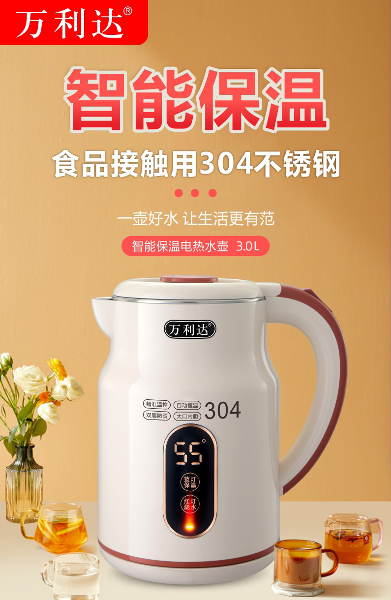 Электрический чайник Zhengwanda для домашнего использования, из нержавеющей стали 304, с функцией автоматического кипячения воды, доступен для дропшиппинга.
