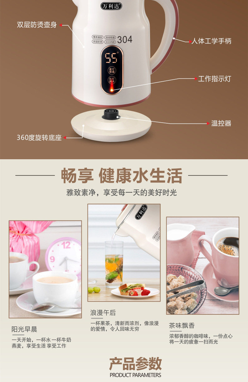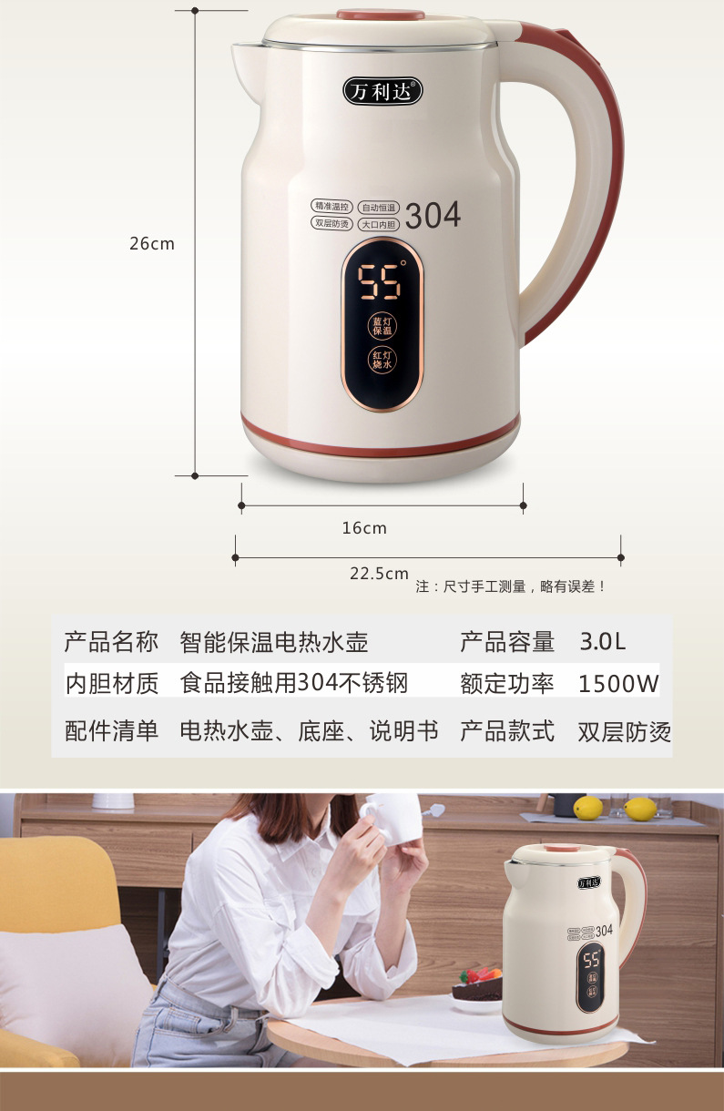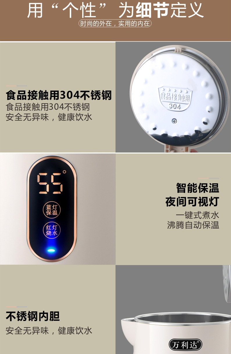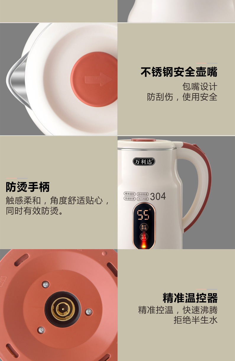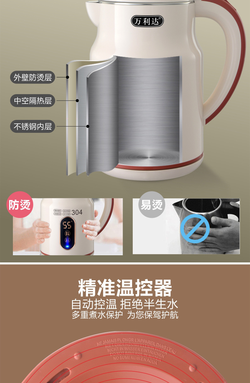 Электрический чайник Zhengwanda для домашнего использования, из нержавеющей стали 304, с функцией автоматического кипячения воды, доступен для дропшиппинга.