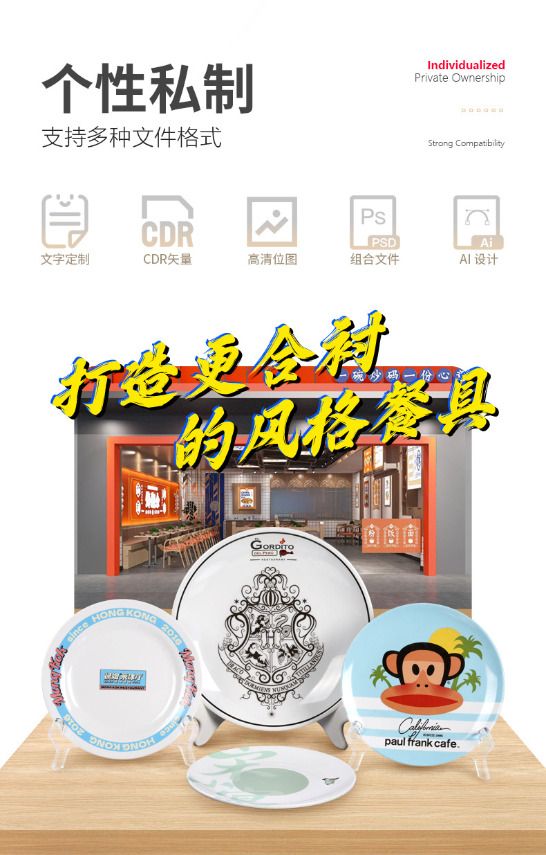 Круглые тарелки из меламина по индивидуальному заказу, рестораны отелей, коммерческая посуда из искусственного фарфора, печатные логотипы, индивидуальные формы с образцами.