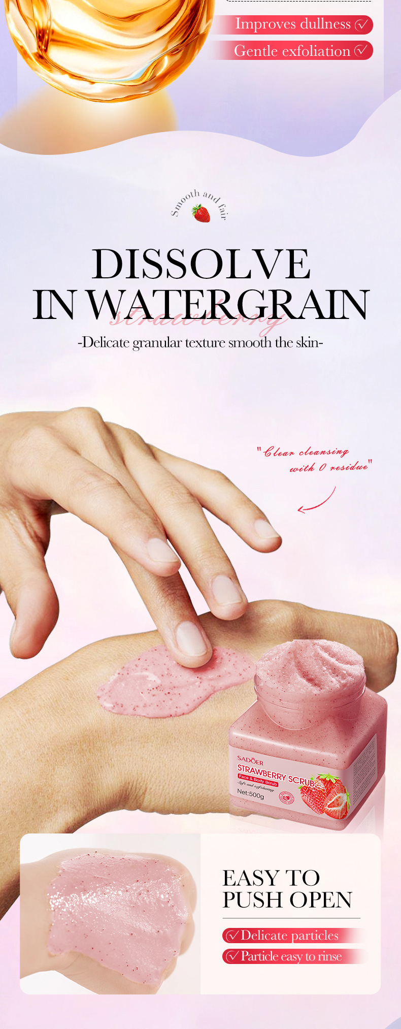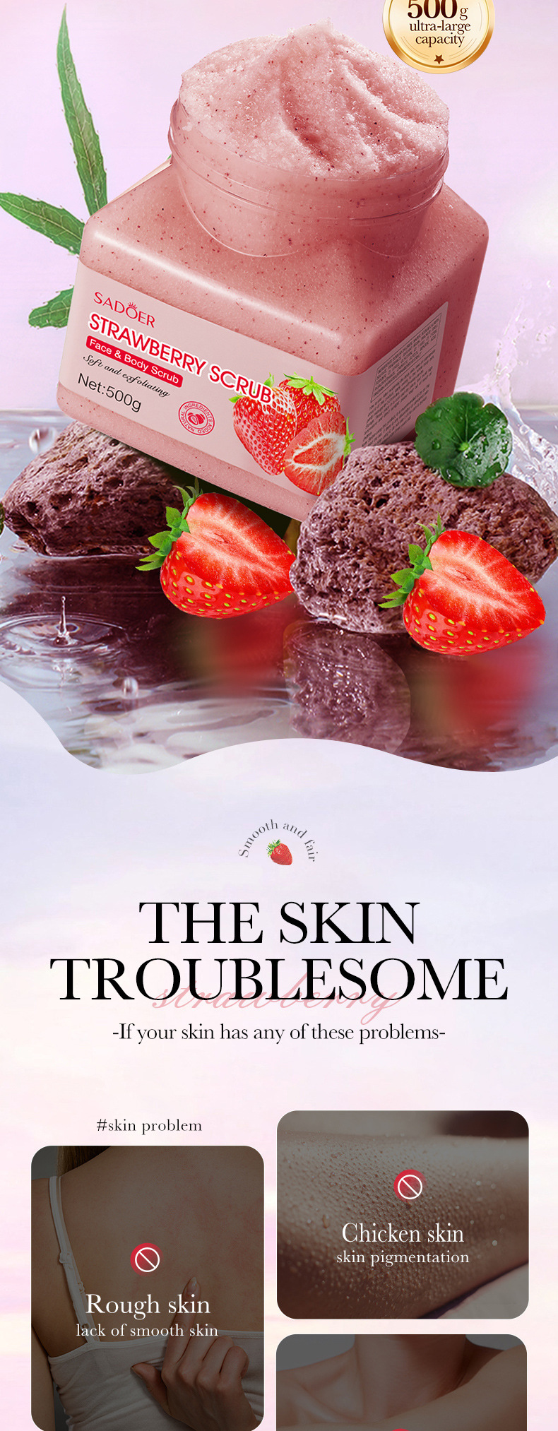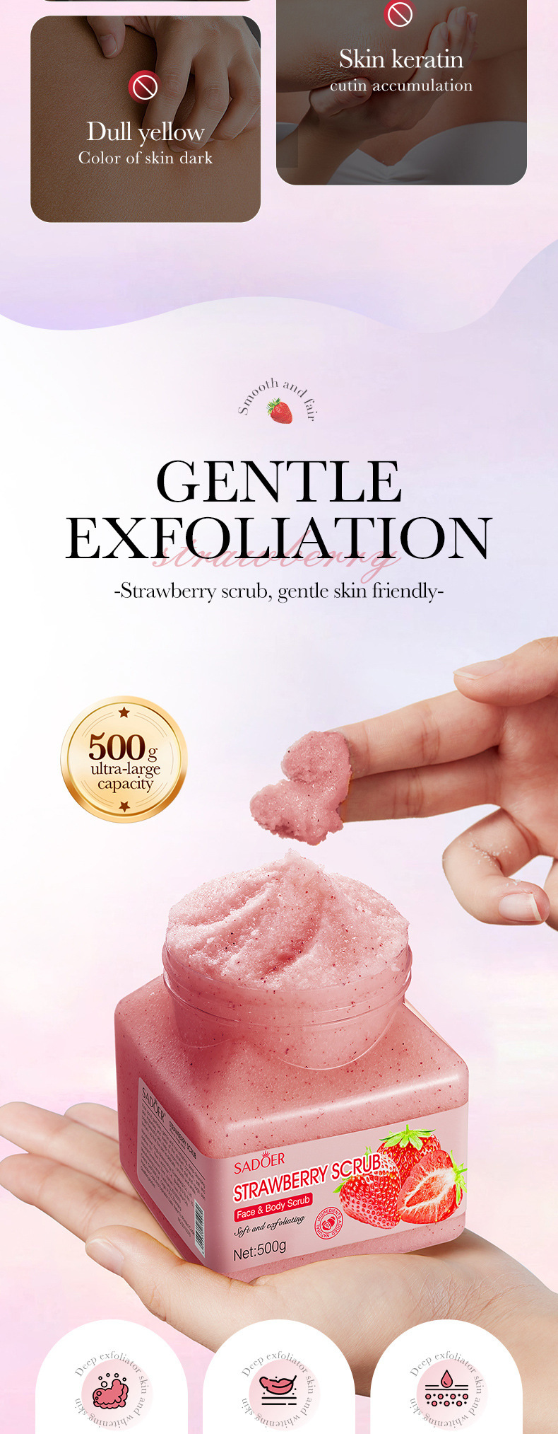Отшелушивающий очищающий скраб SADOER Strawberry (версия на иностранном языке) 500 г