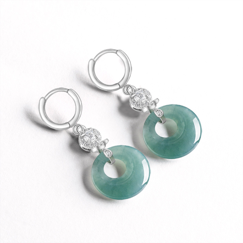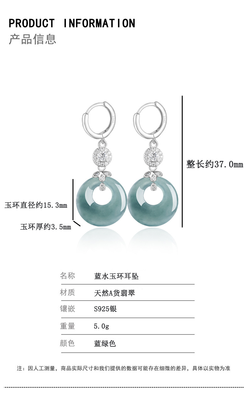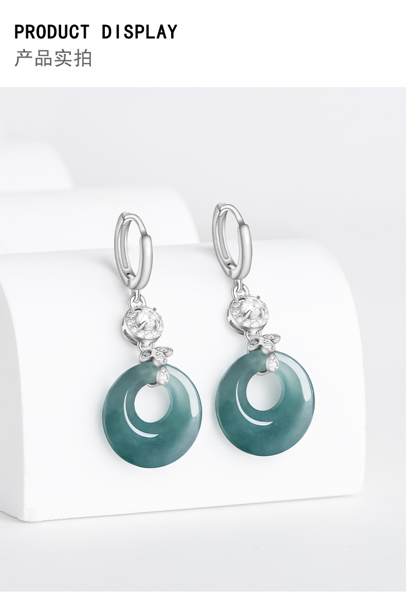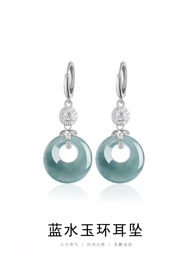 S925 Серебряный инкрустированный натуральный А товары Изумрудное нефритовое кольцо Голубая вода Серьги Ледяной Нефритовый Камень Модные Женские Серьги Серьги