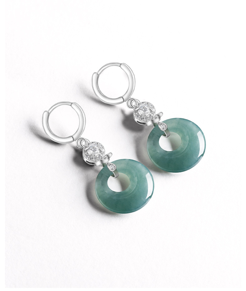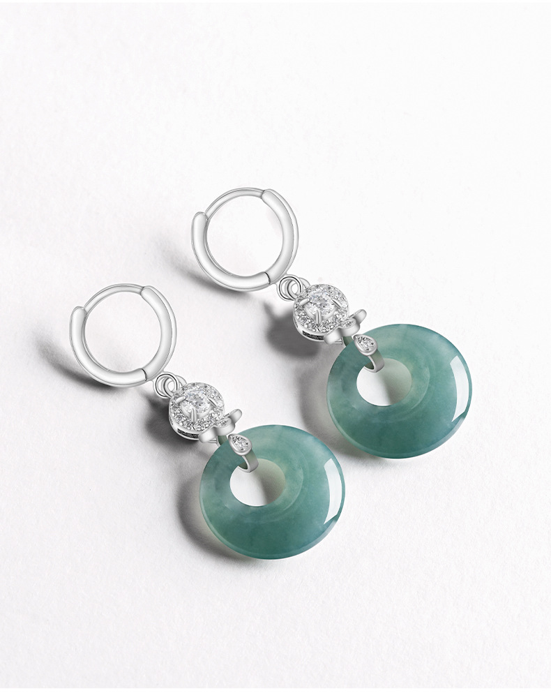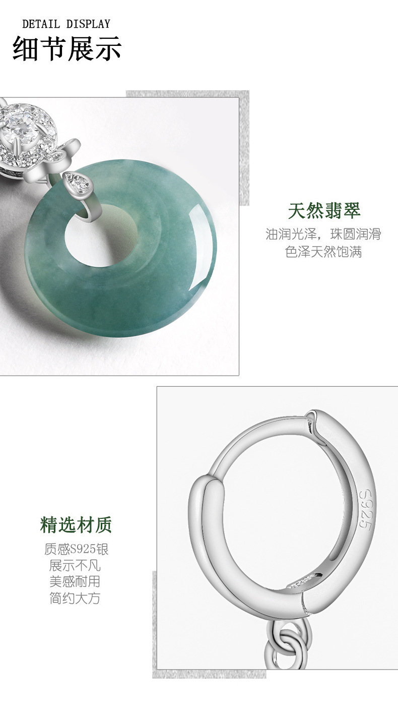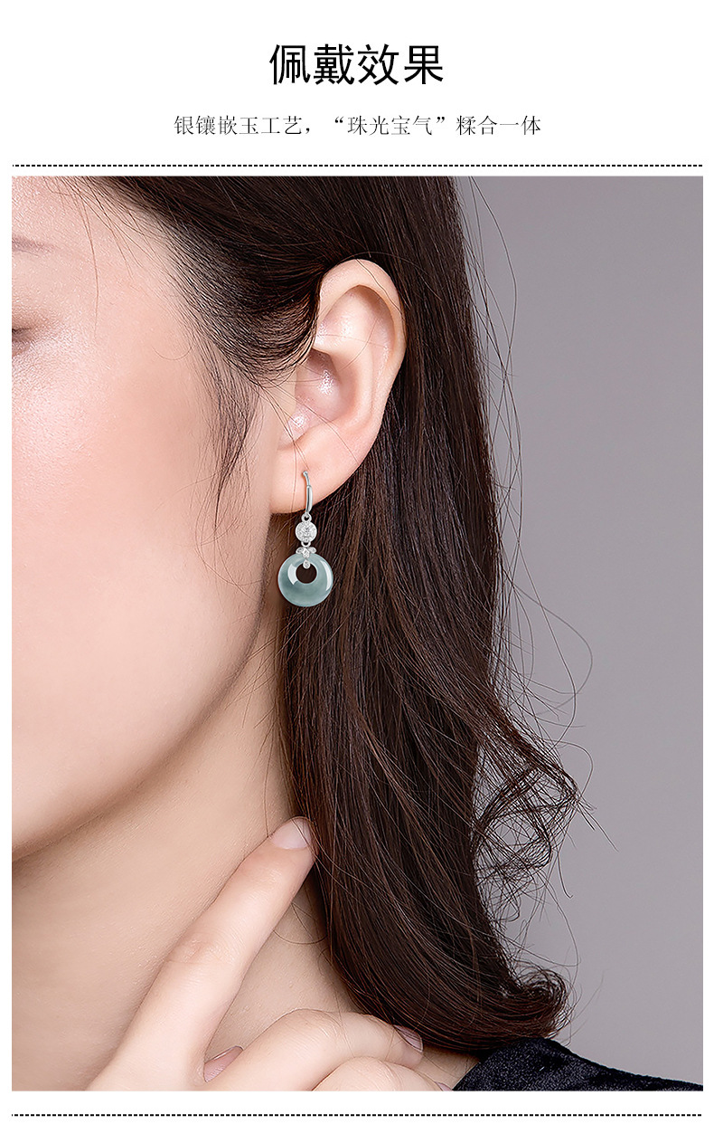 S925 Серебряный инкрустированный натуральный А товары Изумрудное нефритовое кольцо Голубая вода Серьги Ледяной Нефритовый Камень Модные Женские Серьги Серьги