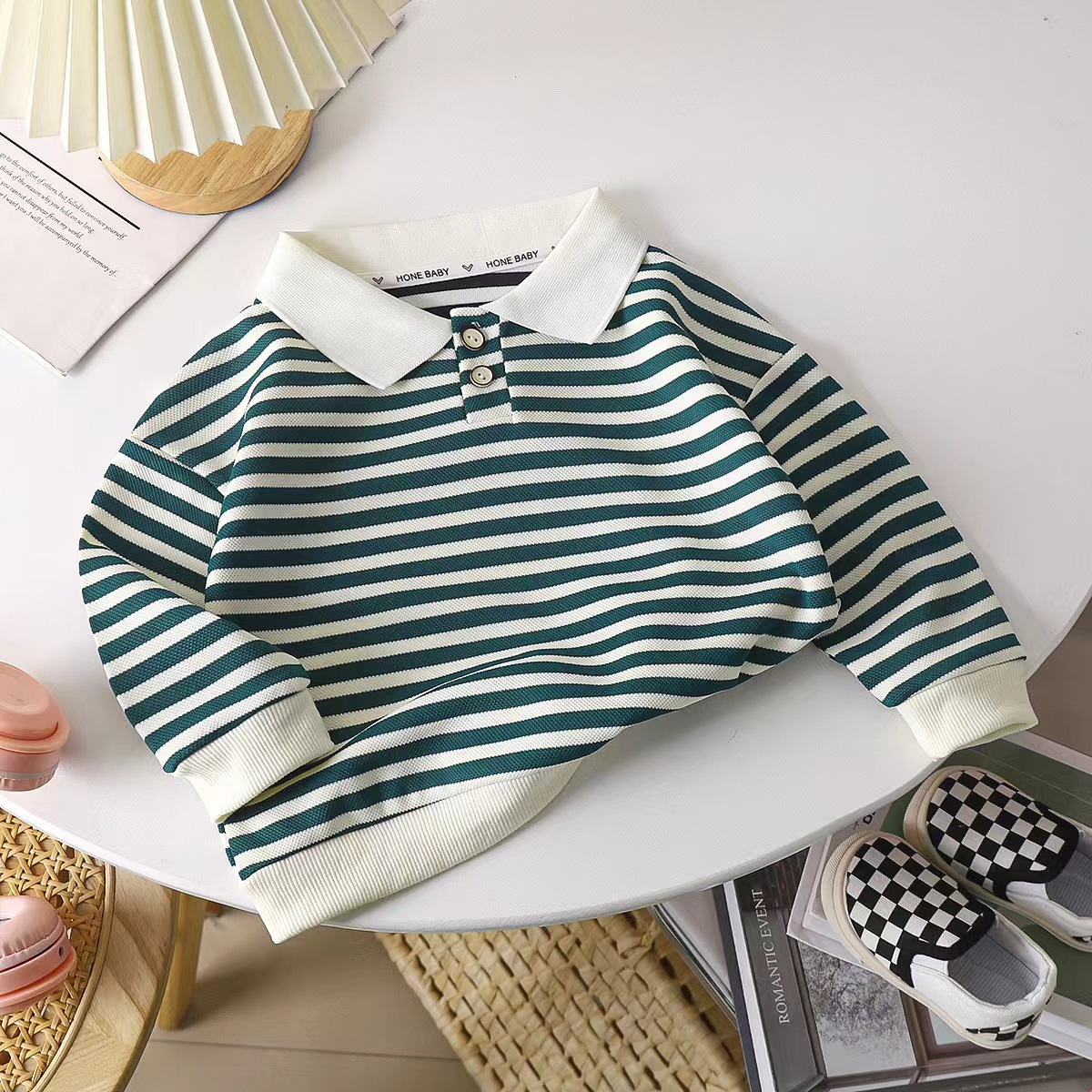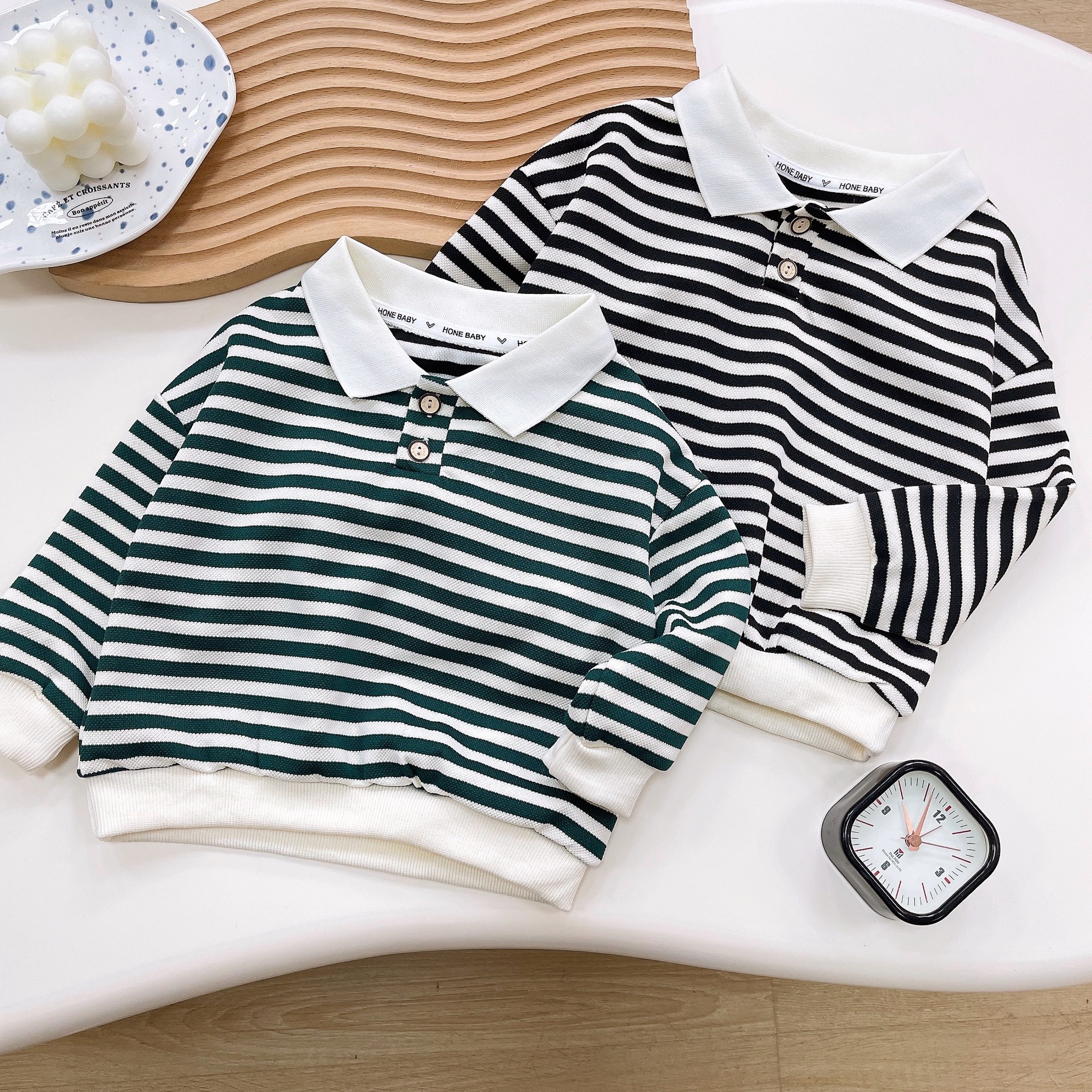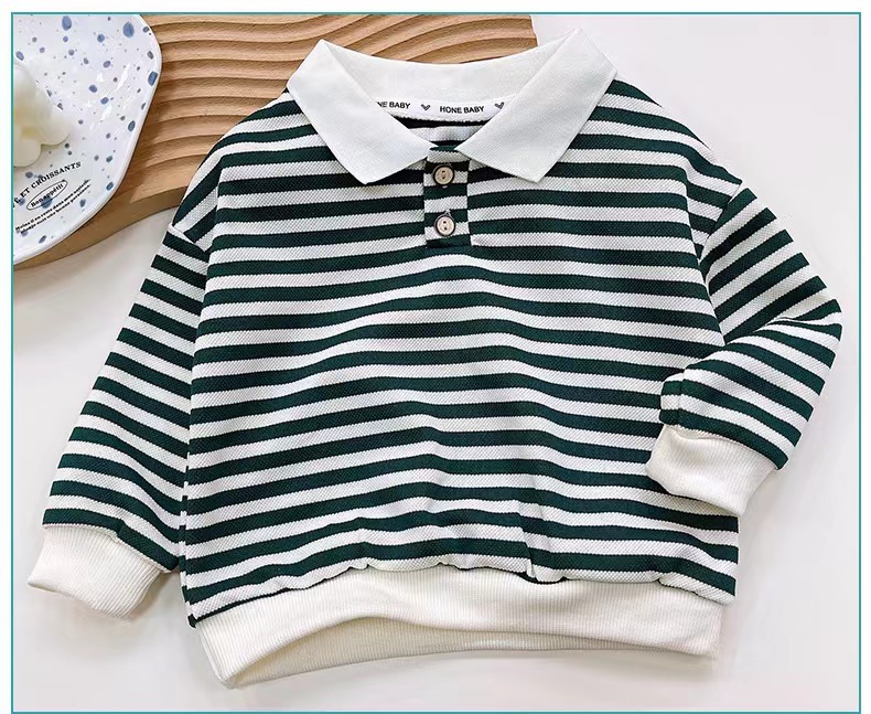 Весенне-осенний детский свитшот-поло, новинка 2025 года, полосатый свитшот с длинными рукавами и лацканами, модный топ для малышей, детская одежда, оптовая продажа
