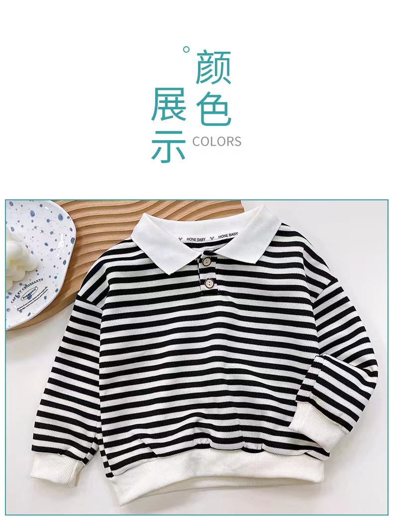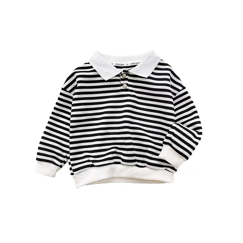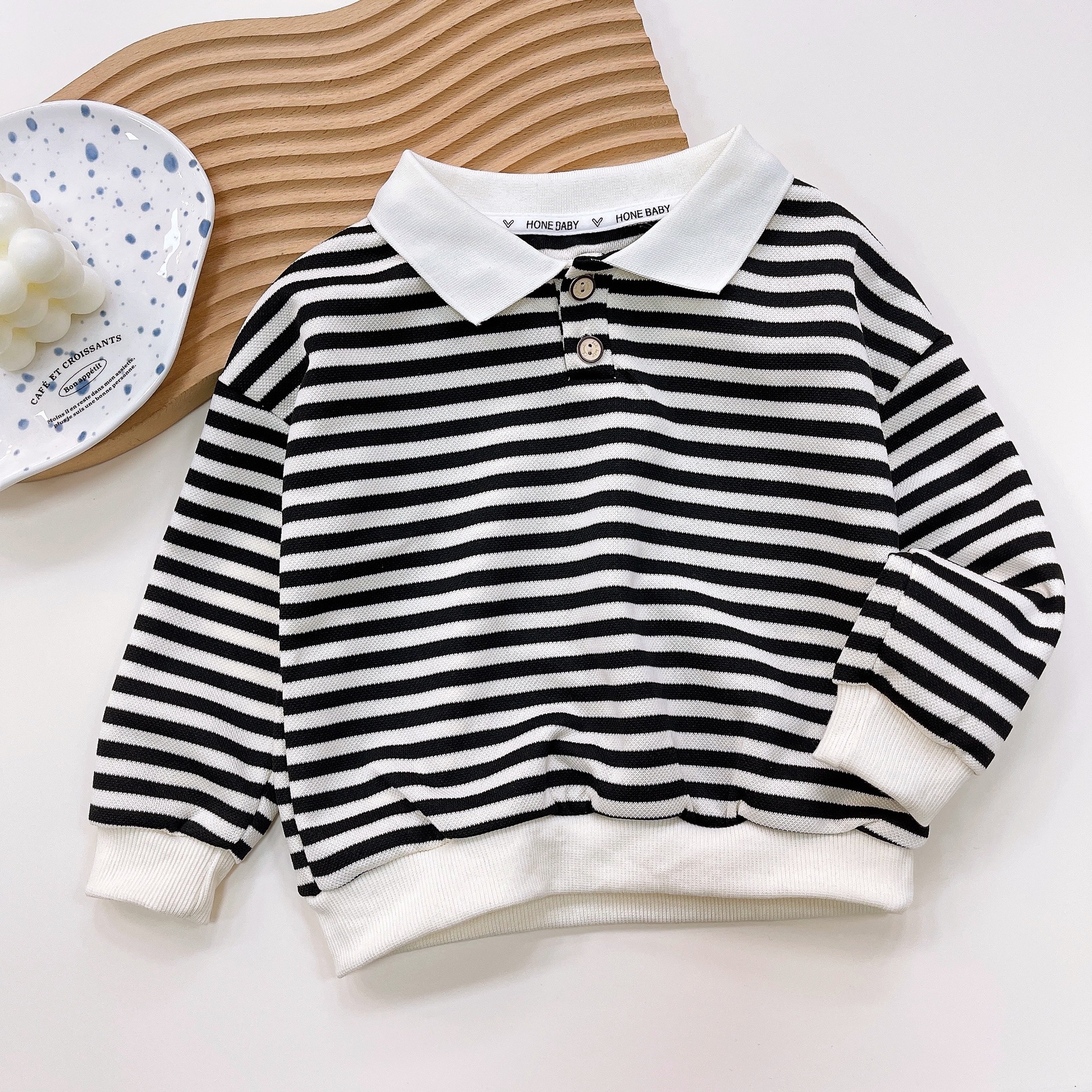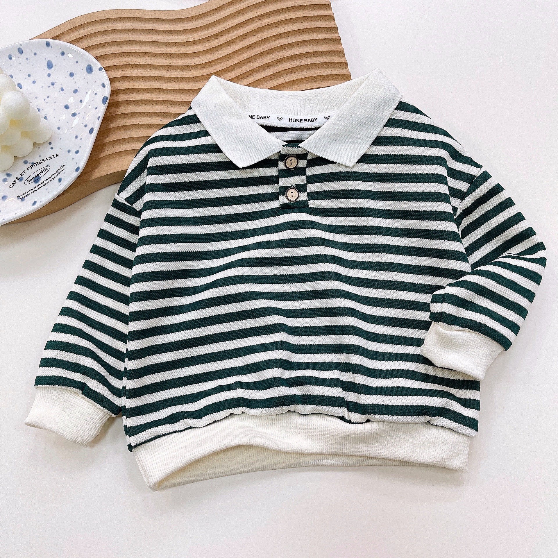 Весенне-осенний детский свитшот-поло, новинка 2025 года, полосатый свитшот с длинными рукавами и лацканами, модный топ для малышей, детская одежда, оптовая продажа