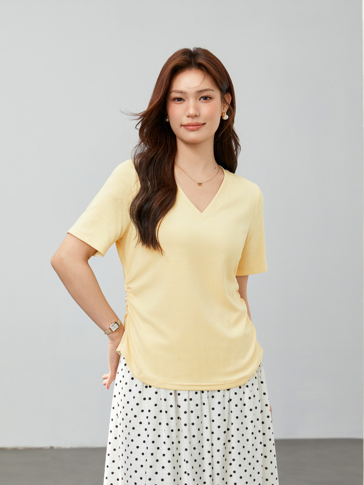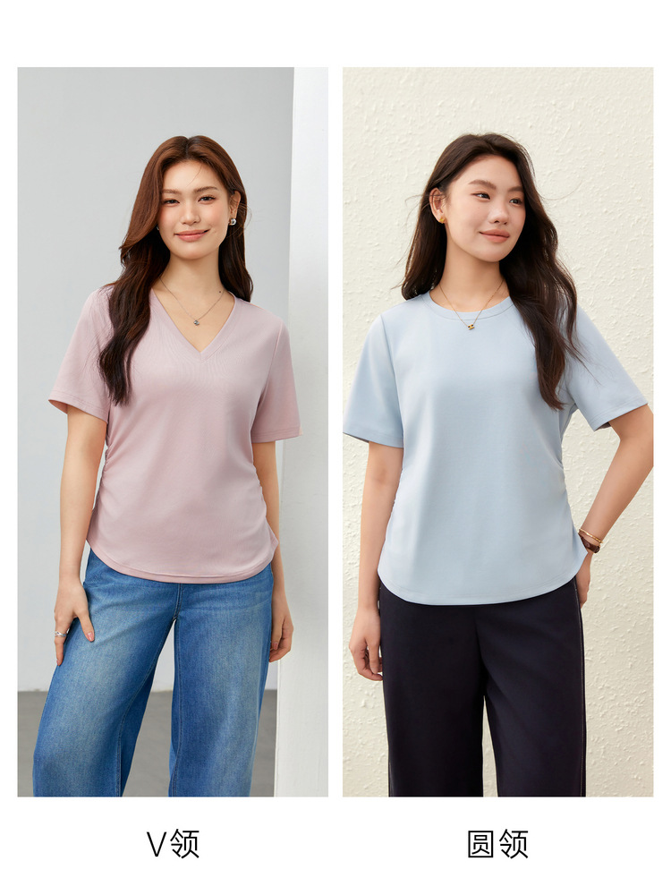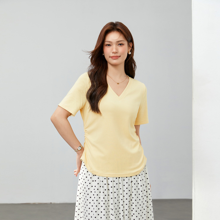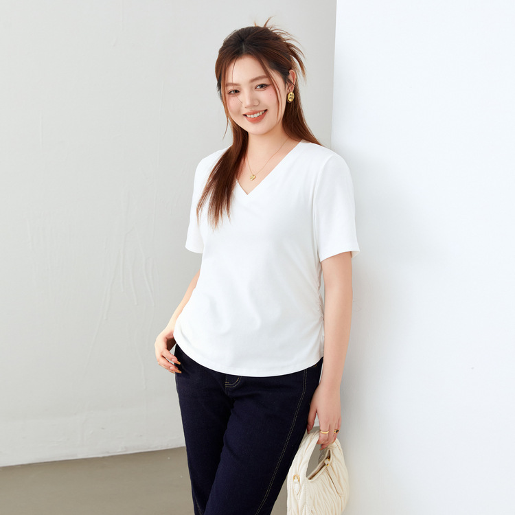 Xianlixiu 2024, новинка весны, женская одежда больших размеров, толстый мм, простой стиль, базовый чистый цвет, универсальный трикотаж для похудения с v-образным вырезом