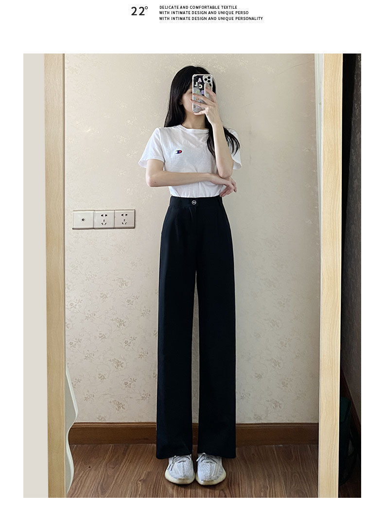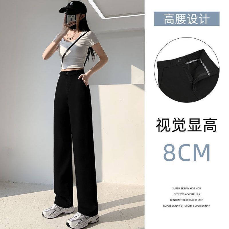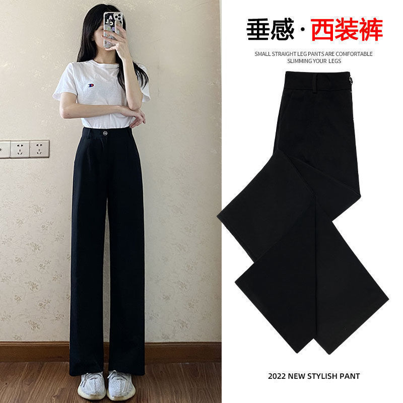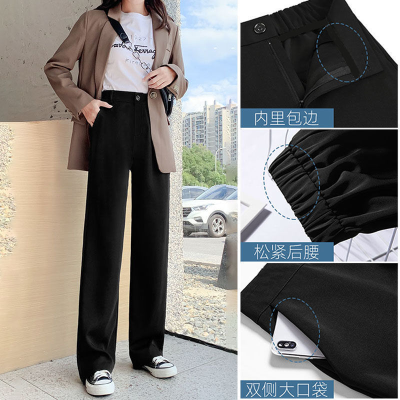 Костюм широких брюк для женщин с драпировкой на ощупь, весна и осень, корейский стиль грушевидной формы, закрывающий тело плоти и утягивающий вид, прямые повседневные брюки для маленьких людей