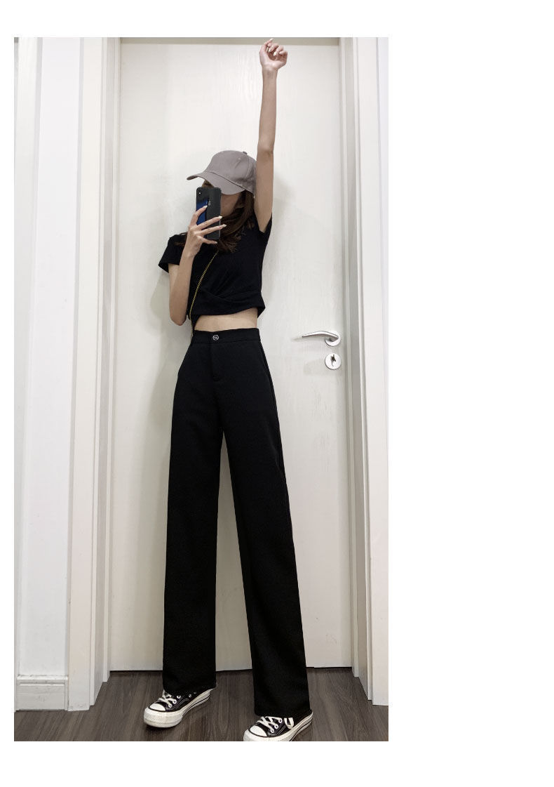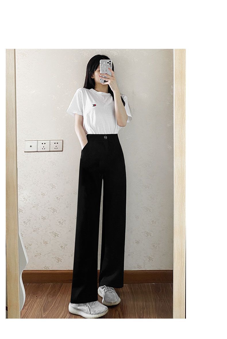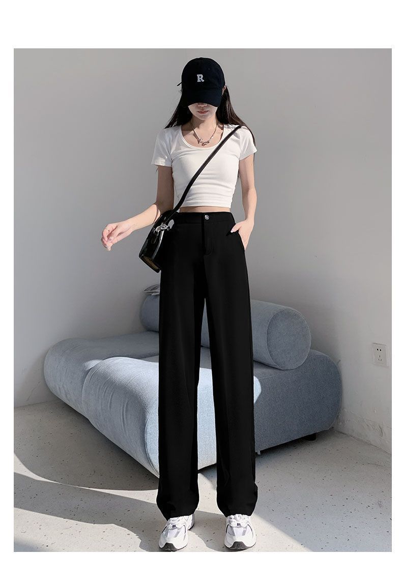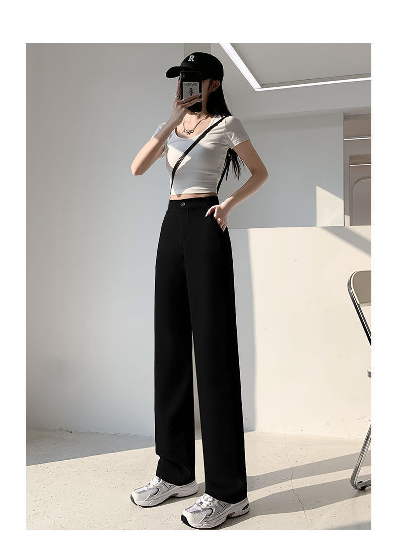 Костюм широких брюк для женщин с драпировкой на ощупь, весна и осень, корейский стиль грушевидной формы, закрывающий тело плоти и утягивающий вид, прямые повседневные брюки для маленьких людей